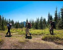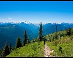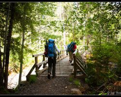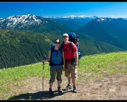 Last weekend I went on my first Kevin and Maria sponsored backpack with the Peninsula Wilderness Club. We headed up the West Cady Ridge trail in the Central Cascades off of Hwy 2 near Skykomish. I had a lot of fun on this trip and got to meet some new friends. The group consisted of 8 people, Kevin, Maria, Julie, Julie's friend Jenna, Kevin's friends Luke, Sherilyn, Paul and myself. We hiked up the ridge and Kevin found us a great camping spot just below the summit of Benchmark Mountain. I also got to meet some people doing their own hike that I know of through trip reports I read on the NWHikers forum. I met trailpair, JimK and kathyb/oldgrrrl and a couple of her friends (I go by the trail name Tagman on nwhikers). trailpair and JimK stayed on the summit while kathyb and friends were doing a dayhike. A report of their trip can be read here.
