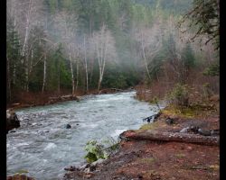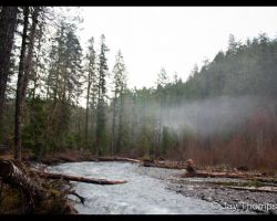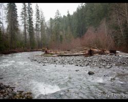 The hike was pretty straight forward. There was no snow to speak of since the temps had been pretty warm for a few days raising the January freezing level to around 8000 feet. The trail is in OK shape except for a washed out section about 2 miles in. We ended up contouring the river for a bit until we got back on good trail. There were a few blow downs further in. When we got to about 3 1/2 miles, there was a
