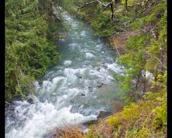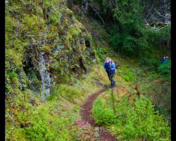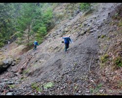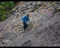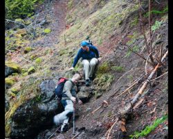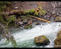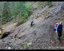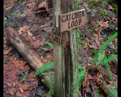 pretty bad washout that had us scrambling to get past. Tess probably had the hardest time crossing the washout since she was still favoring the knee she had surgery on. At about 4 miles, we reached another washed out section near where the old bridge used to be. We scouted out a way trail that looked to go further, but in the end we decided to turn around here. On the return trip to the car, we took the Cat Creek Loop Trail that really seemed to go nowhere in particular other than to lose about 300 feet in elevation.