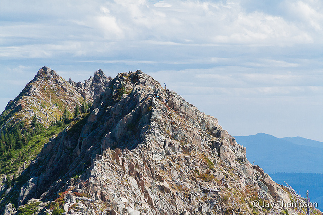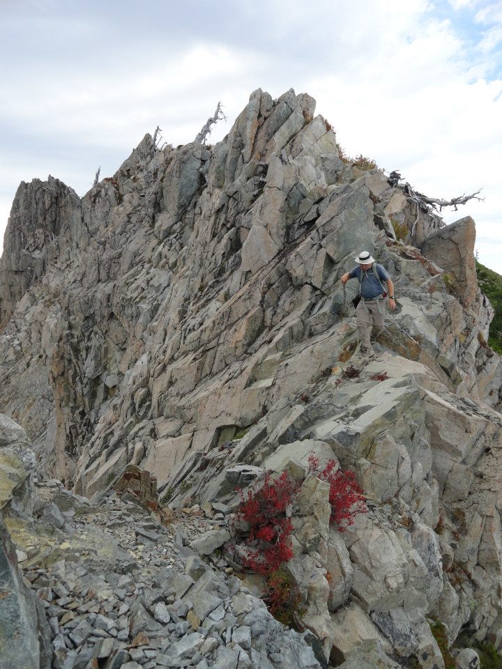 There was a group in front of us that was already doing the traverse. During lunch we occasionally heard voices drifting down and when we looked up we could see these folks on the ridge. They kept going back and forth like they didn't know where to go. Peder said the route in the area they were in was a little hard to follow. You can just make out one of the hikers in the middle of the saddle.
