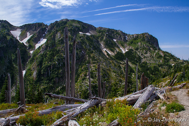 The trail from the Norway Pass Trailhead is uphill all the way to Bear Pass. It then drops down to Grizzly lake and goes up and down in elevation until the Mt Whittier Trail. You hardly notice the elevation gain on this hike, as you witness wide open views the whole day.