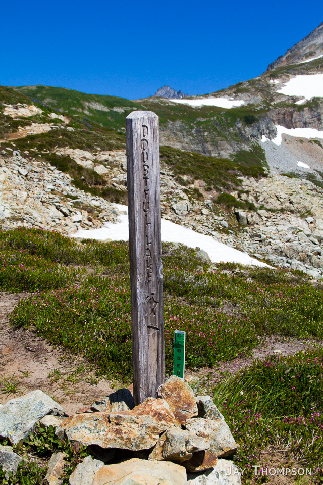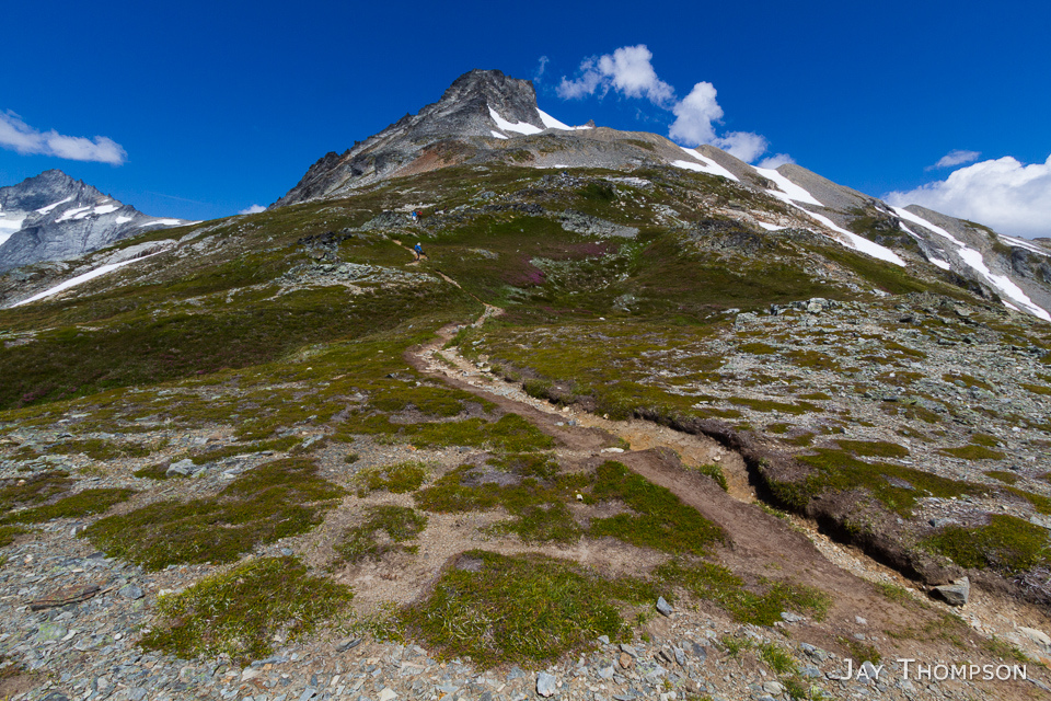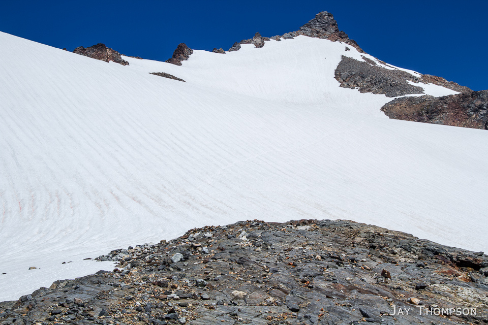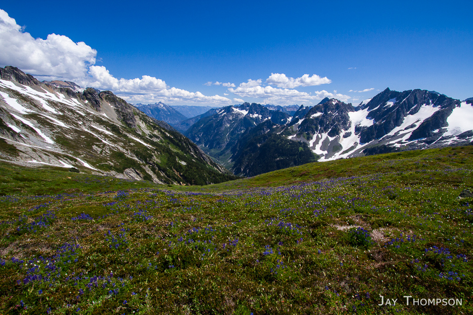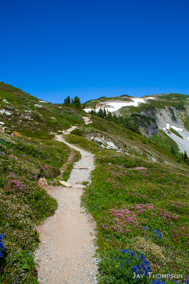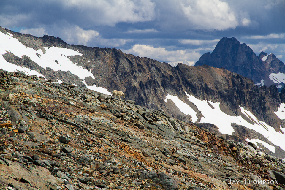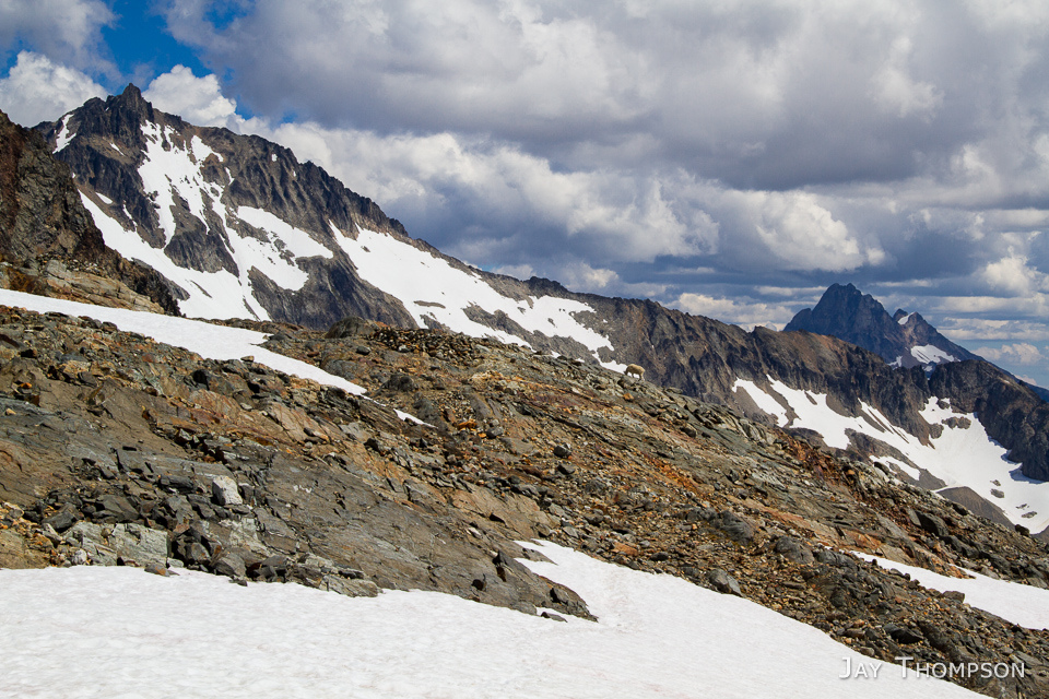 Hiking the trail is straightforward. It switches back and forth across the side of the mountain until you get to the pass 3 1/2 miles and 1700 feet in elevation gain later. When I was there, there were several little rivulets of water coming off the hillside all along the trail - finding water is definitely not an issue. At the pass itself, a Park Ranger was hanging out, probably checking people for camping permits and answering questions. I only had a daypack so he left me alone. There is a big flat area at the pass and being that it is kind of a crossroads, it is a natural gathering place for folks coming up from either the road, Stehekin, Sahale Arm or the Ptarmigan Traverse. After the pass, the trail continues 23 miles down to Stehekin, or you can take a left and go up to Sahale Arm. From here, the trail climbs about 800 feet in elevation until you reach the Sahale Arm itself. Once on the Arm, it is a lovely subalpine walk with a not too steep grade (or perhaps the stunning 360 degree views keep you from noticing the steepness) until you reach about the 7000 foot mark. Surprisingly, not mentioned anywhere I researched, the last 600 feet or so of elevation going up to Glacier Camp was the worst. It was steep, very rocky and the soil very loose in a lot of places. Nothing too horrible, but definitely the worst part of this hike. Once at the top, I got chilled quickly as it was windy up there. After a quick bite to eat, and snapping some photos, I was ready to head back down the almost 4000 feet of elevation to the trailhead.