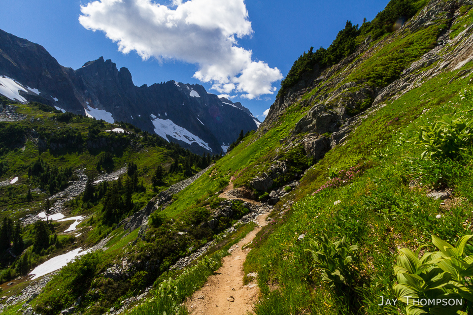I had an itch to go for a hike in the North Cascades. Being so far from the Kitsap Peninsula, its easy to think the North Cascades are out of reach. The Cascade Pass trail, according to Craig Romano in this WTA post, is the only trailhead in the North Cascades National Park that you can drive to. After catching a 6:25am ferry (the earliest boat on a Sunday) across the Puget Sound from Kingston, I drove to the trailhead and was surprised to find myself at the trailhead by 9:30.
