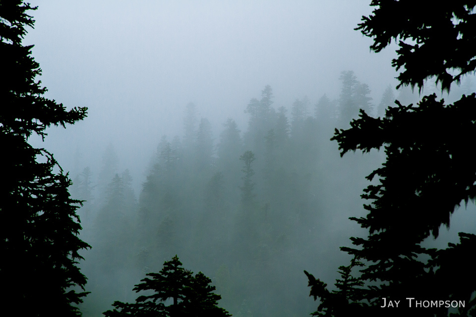 The day was almost totally socked in and we only got a few views of the Mountain all day. Since we got such a late start getting to the trail, we didn't get to Mystic camp until about 7:00pm. It was still a great trip, but felt rushed due to our lateness. Some views would have been nice but at least it didn't rain on us.