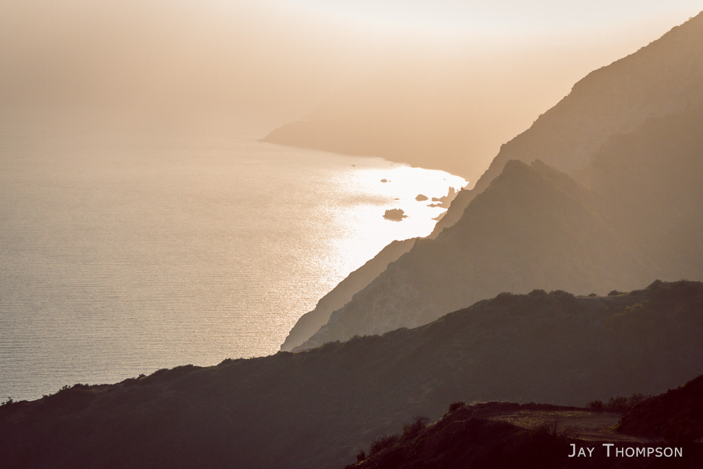 The hiking was smooth once I was high on the ridgeline. I made really good time. Much better than the conservancy guy estimated, but still, the sun was setting and it would be dark soon. I eventually came to an intersection in the road and there was a sign pointing to Avalon. The Hermit Gulch Camp would be that direction so thats the way I went. I felt bad that I gained all that altitude just lose it to go to camp but I had to get down there. I would have to make up the elevation again the next day.