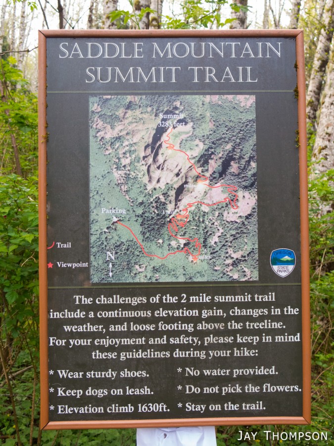 Driving Directions per Oregon Hikers: From Portland, take Highway 26 west for 60 miles, and turn north just before milepost 10 onto Saddle Mountain Road. Go 7 miles on this paved, but bumpy road where it ends at the trailhead.