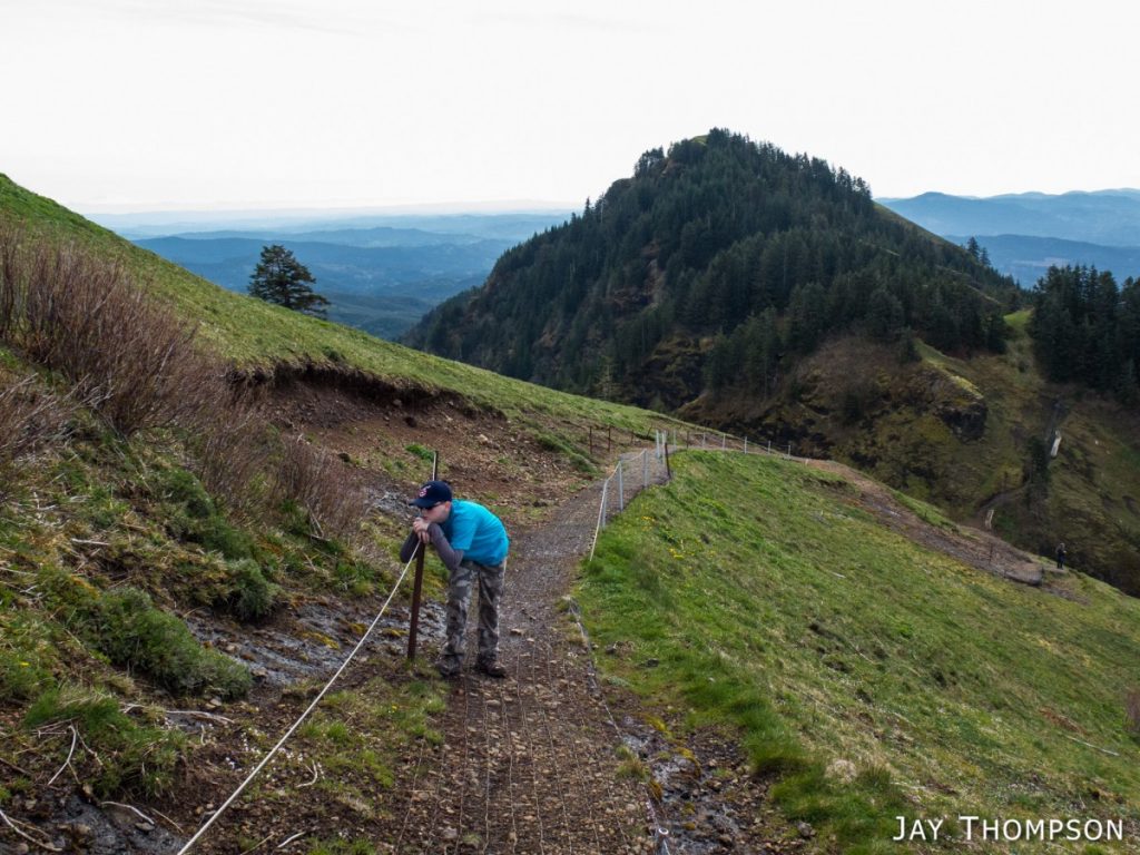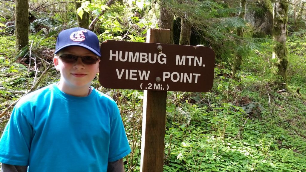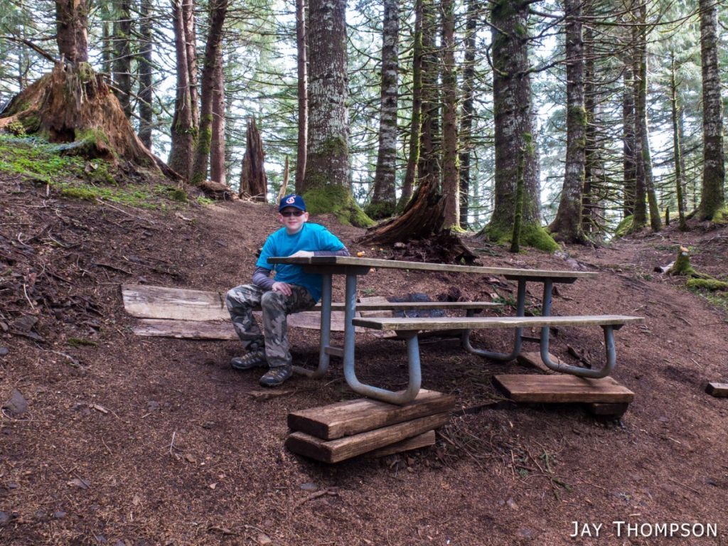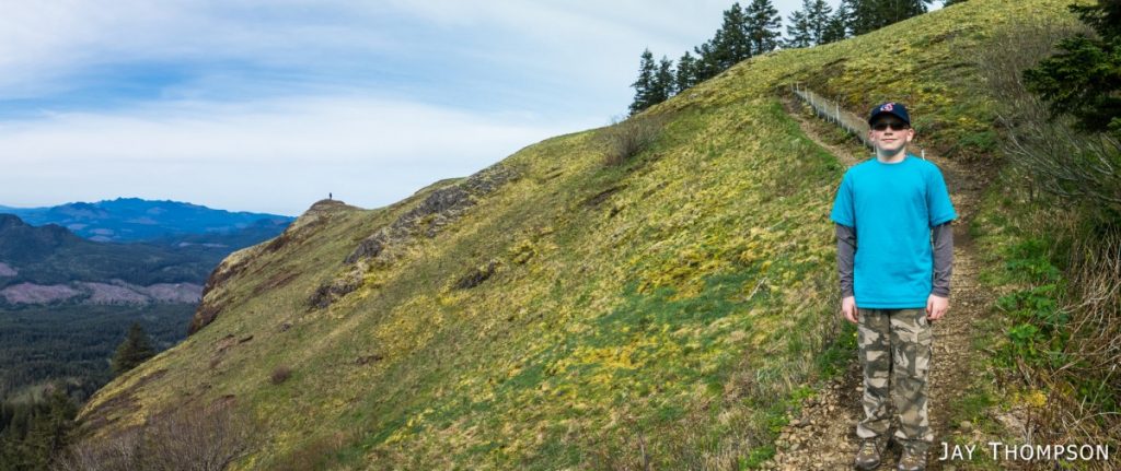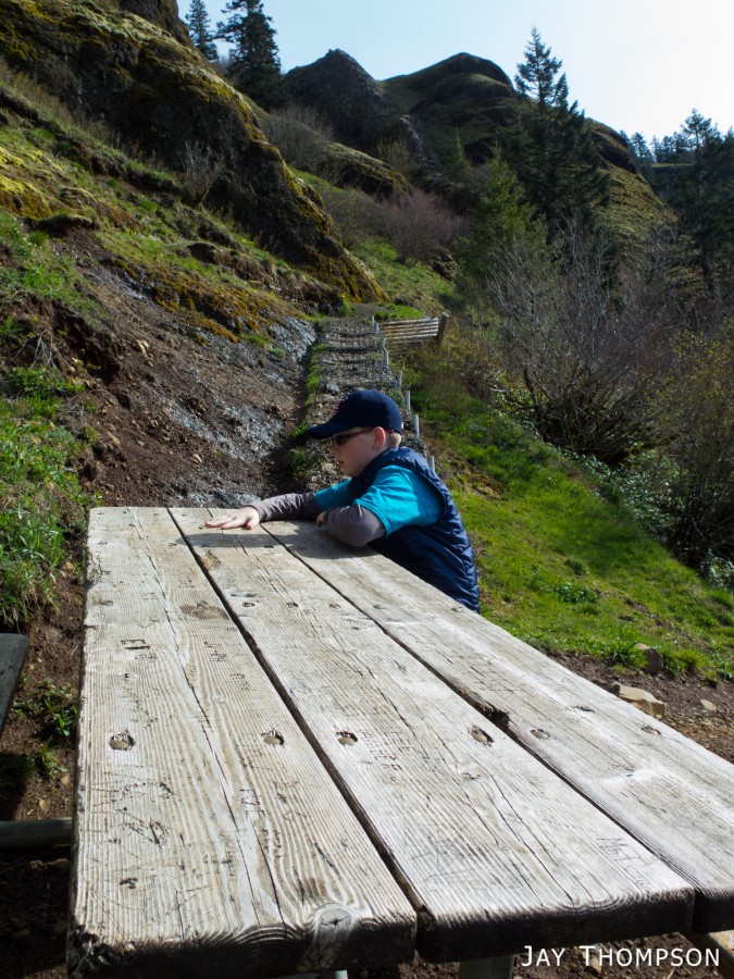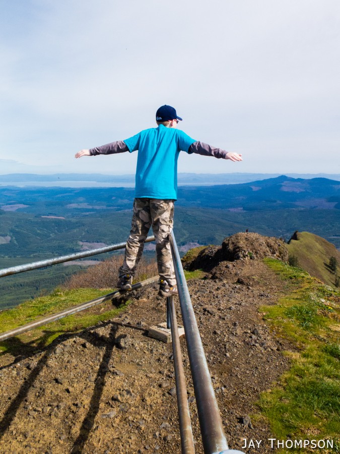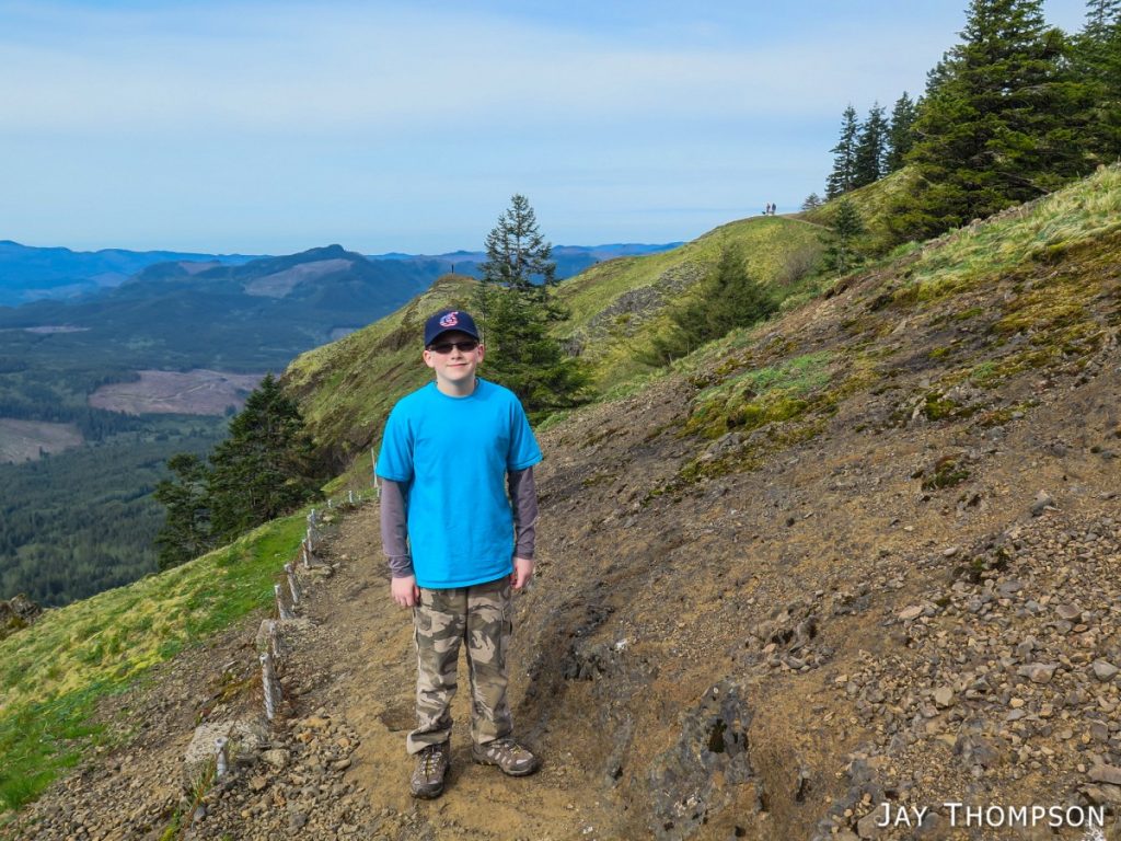 While visiting some friends that live in Hillsboro Oregon, my son Hayden and I hiked up Saddle Mt which was only about an hour away from where we were staying. Climbing Saddle was of interest to Hayden when I pointed out that it was the mountain that we could see in the distance when we visited Cape Dissapointment in 2014. What was not of interest to him was climbing the 1600 or so feet of elevation to get to the top. As usual when I take him hiking, he dragged his feet much of the way and complained a lot. His attitude always changes whenever we get near the top of a hike as he starts to enjoy the views and starts feeling like he has accomplished something, but man I tell you. Its pretty rough on dad to get him going. You'll see in the pictures that he stops at literally every picnic table on the short 2 mile hike to take a break. I try not to drag him out too often as I don't want him to be completely turned off from hiking forever, but I do feel I have a responsibility to expose him to hiking occasionally so that one day he might gain an appreciation of all the outdoors has to offer.