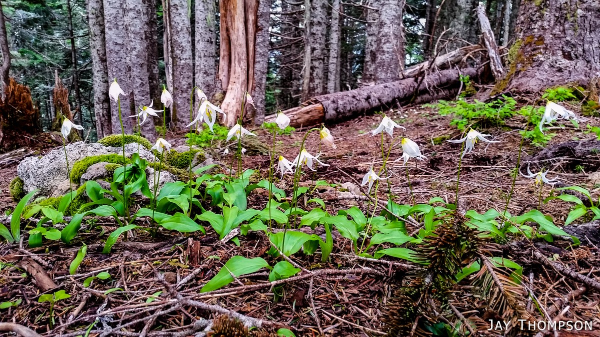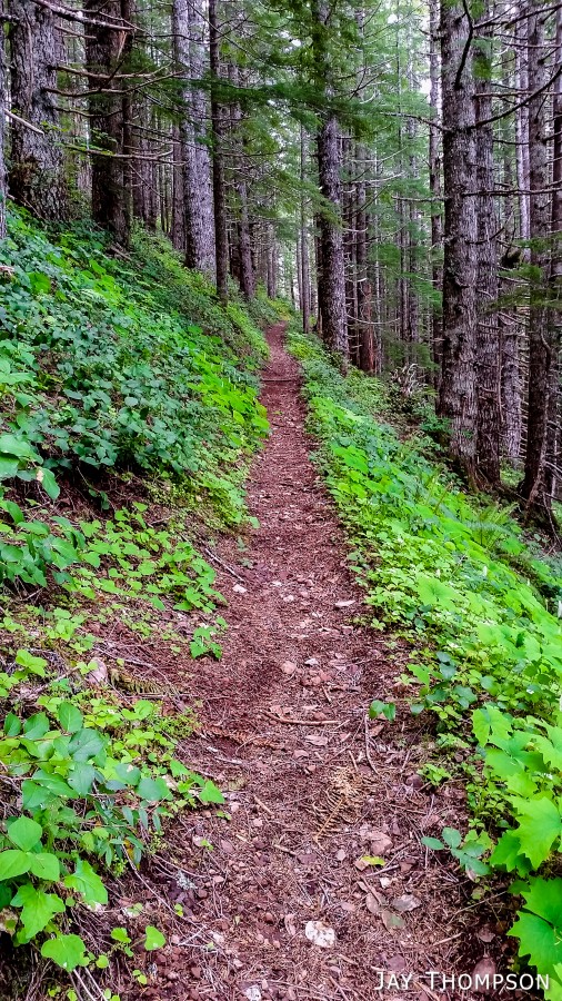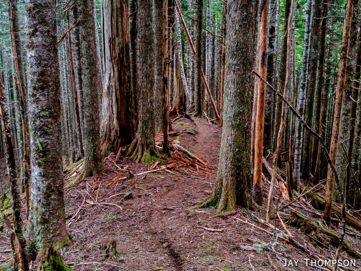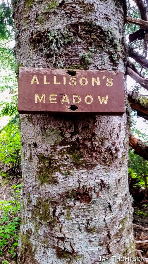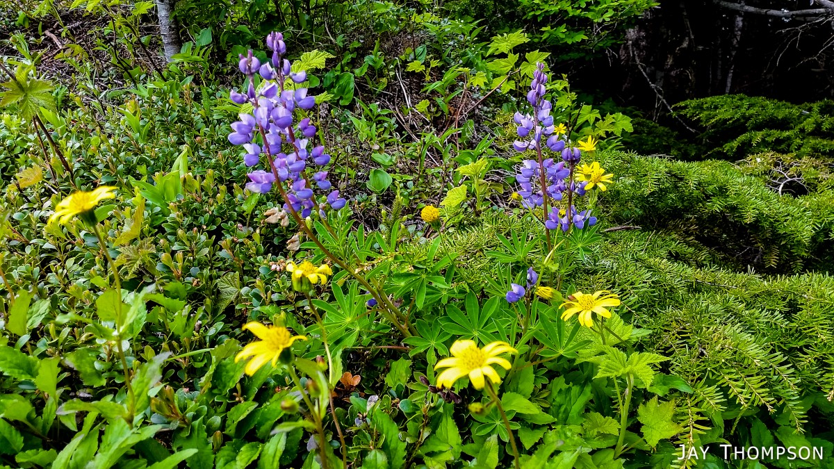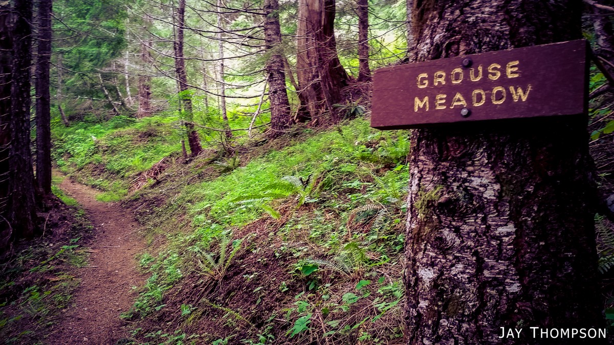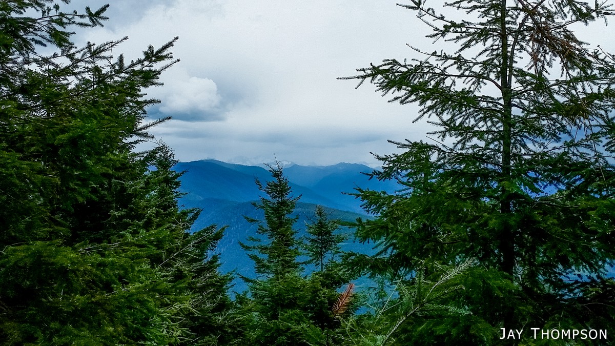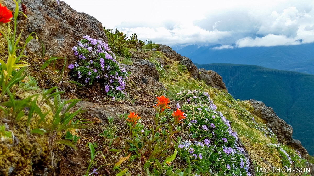 The ridge crest and mountain itself were delightful. Being at such a relatively low elevation, the ridge crest is heavily wooded, however there are still occasional views to be had. Places such as Grouse Meadow, Jasmine's Meadow and Allison's Meadow were filled with several types of Olympic Mountain wild flowers and the views across the valley were pretty nice. Unfortunately for me, the clouds obscured any views of Mt Olympus that I had heard about. Views from the very top of the mountain were not to be, since it is so heavily wooded, but just below the summit at Panorama Point (unsigned but hard to miss), one gets some very nice views down at Lake Crescent.