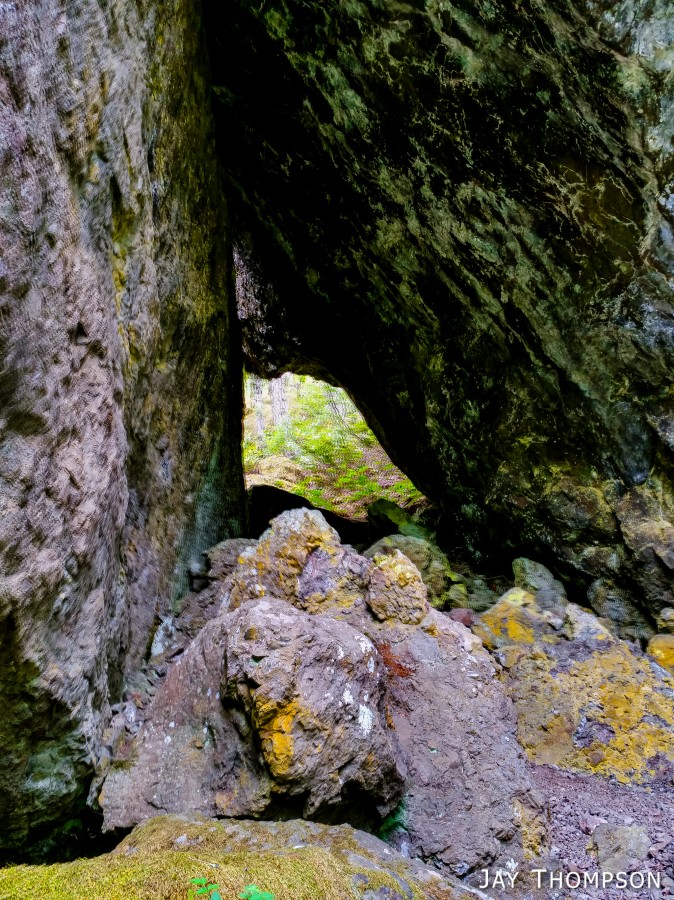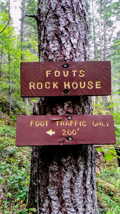 A fun feature of the trail and a welcome place to take a break is at the Fout's Rock House. It is a pair of huge boulders, one leaning on the other to create a sort of shelter. There are various rocks and places to sit.