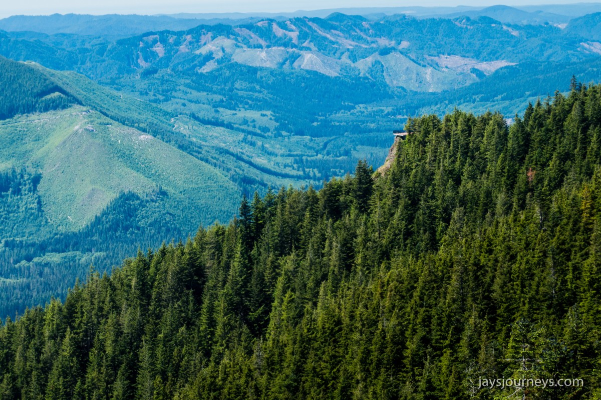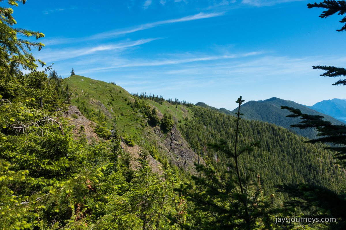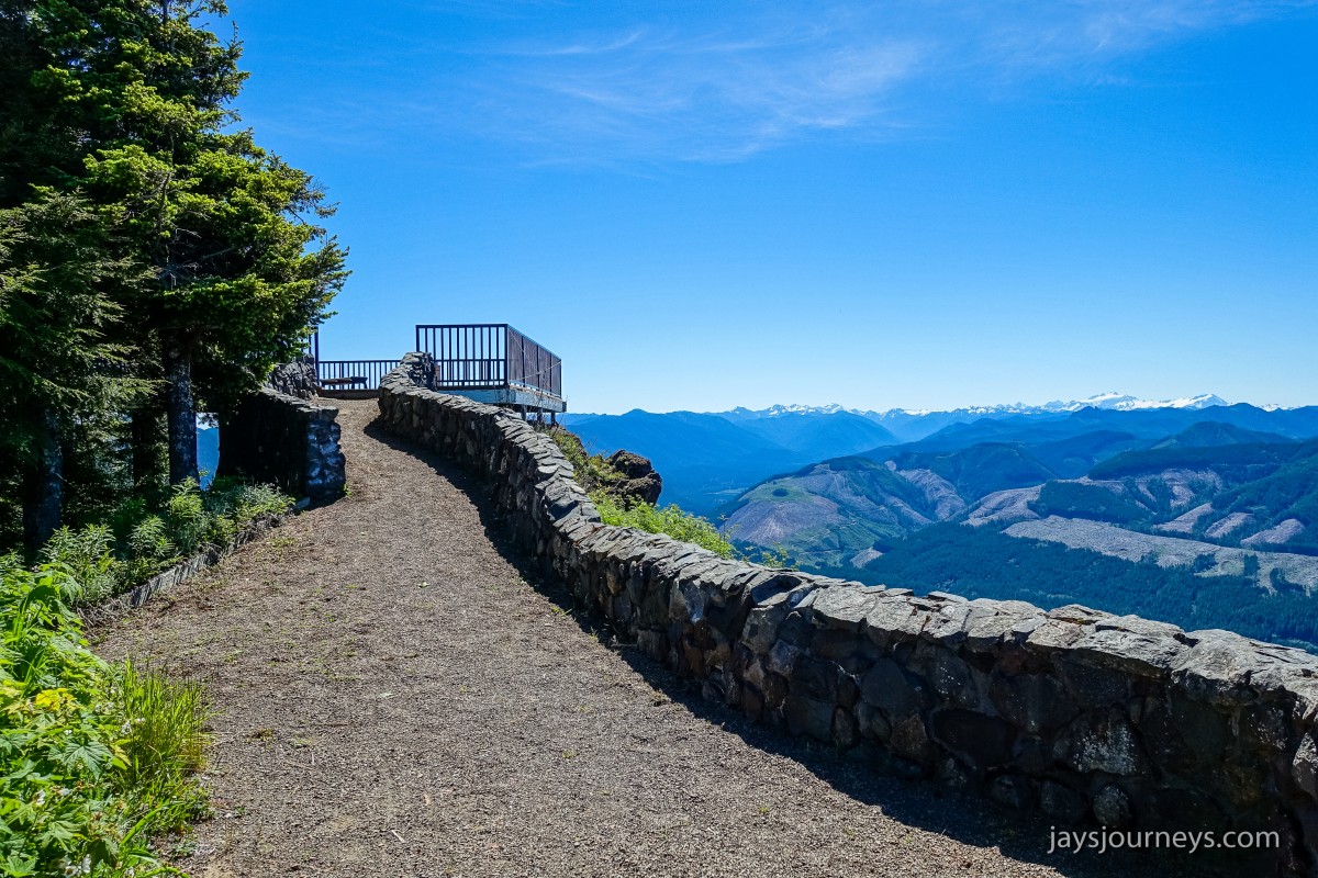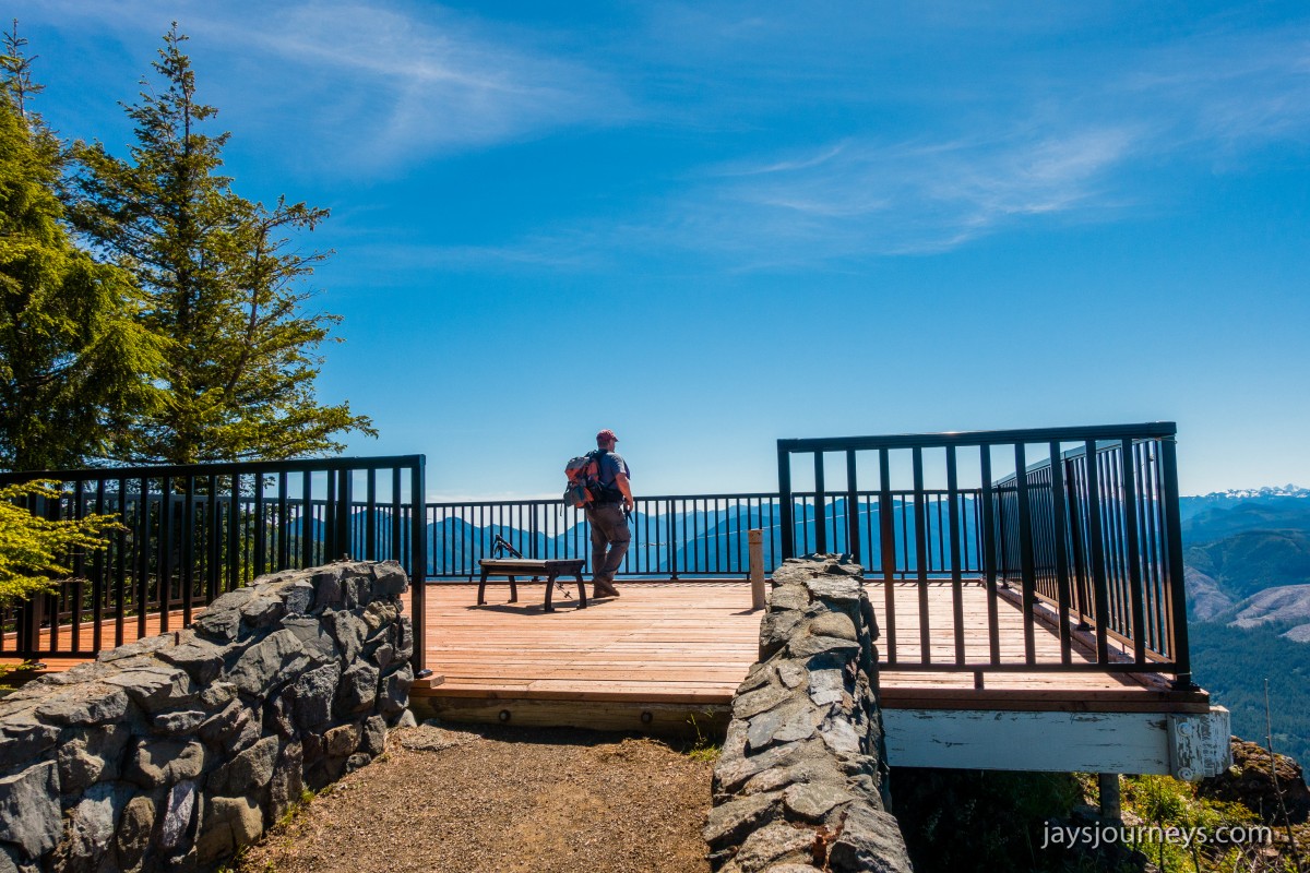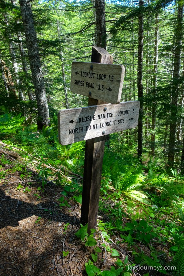 The old lookout site at Kloshe Nanitch had previously been torn down and a viewing platform had been put in its place. At the time we visited it, it was mostly just an empty platform with a single bench to sit on in the middle. Previous editions of the Trail Guide reference North Point, while newer editions talk about Kloshe Nanitch. Klosh Nanitch is where the former historical lookout site sits while North Point which sits a couple hundred feet higher in elevation is about a half a mile to the north-east on the same ridge.