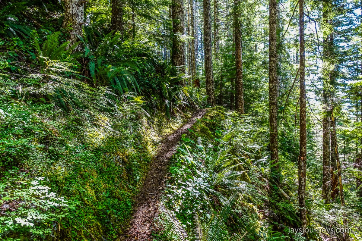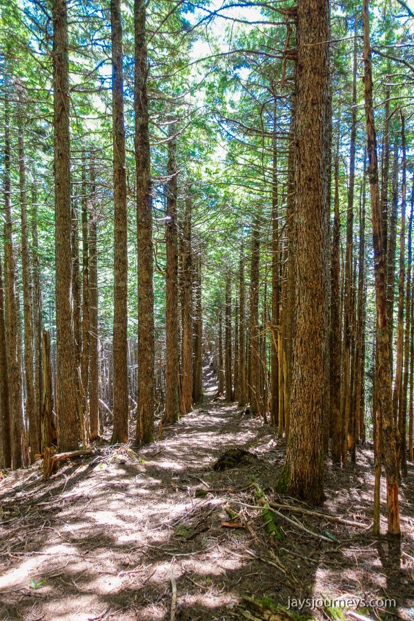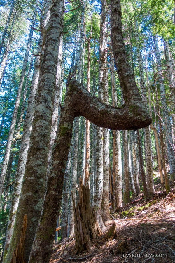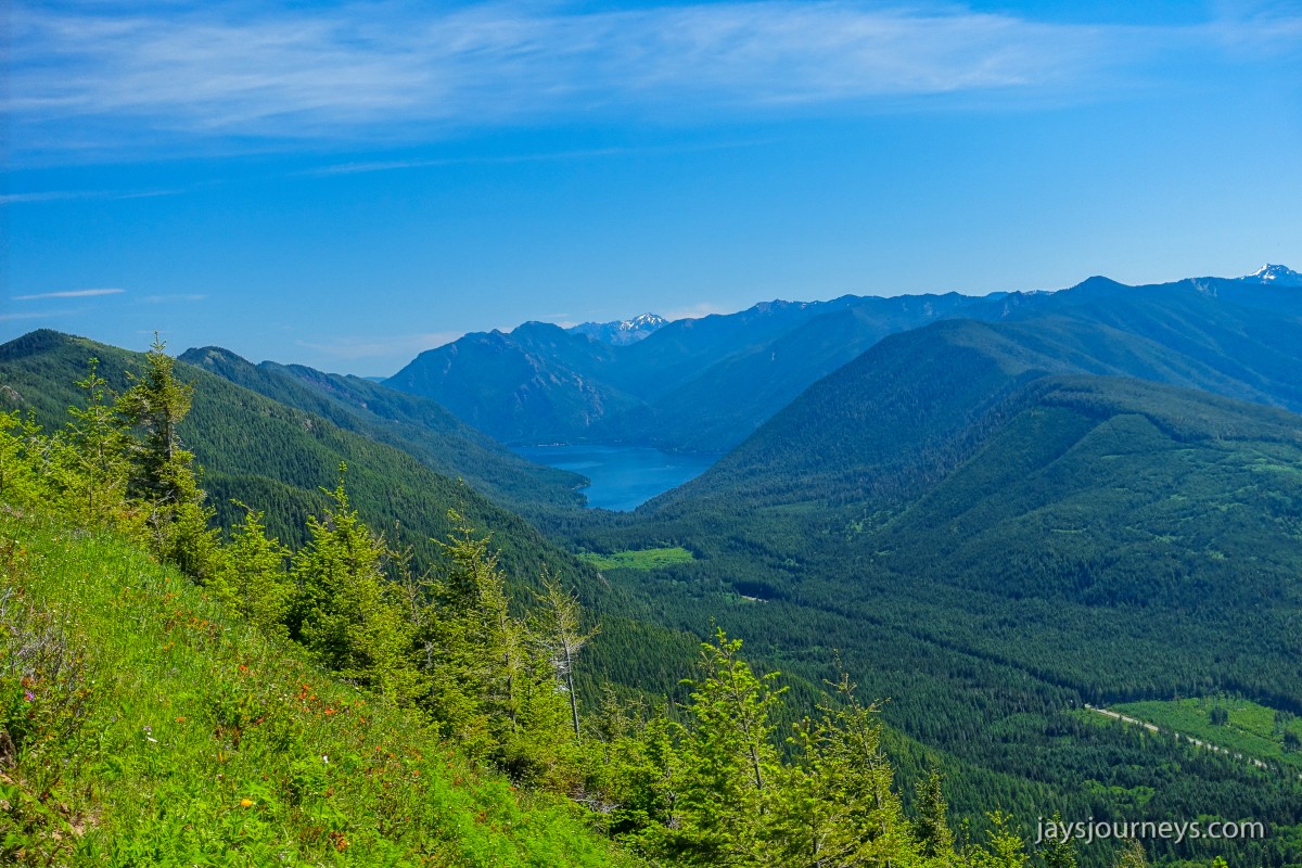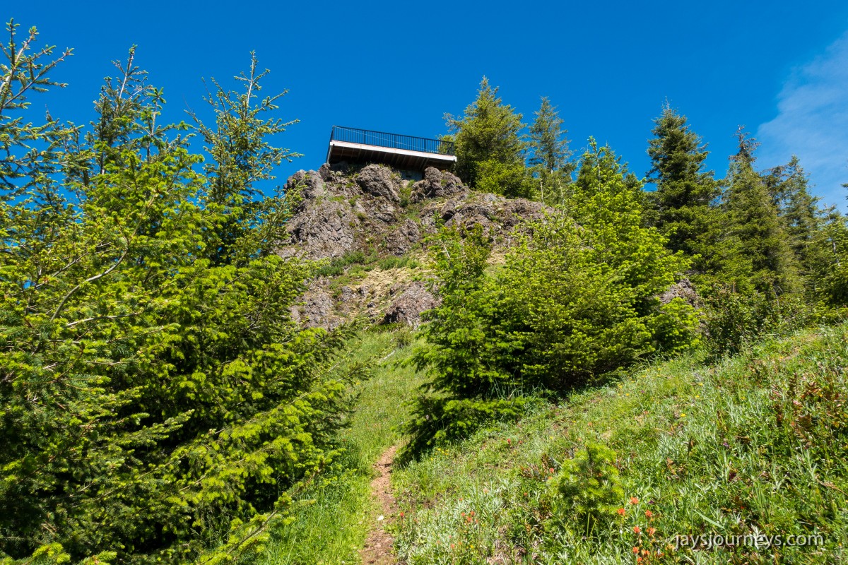 The old lookout site at Kloshe Nanitch had previously been torn down and a viewing platform had been put in its place. At the time we visited it, it was mostly just an empty platform with a single bench to sit on in the middle. Previous editions of the Trail Guide reference North Point, while newer editions talk about Kloshe Nanitch. Klosh Nanitch is where the former historical lookout site sits while North Point which sits a couple hundred feet higher in elevation is about a half a mile to the north-east on the same ridge.