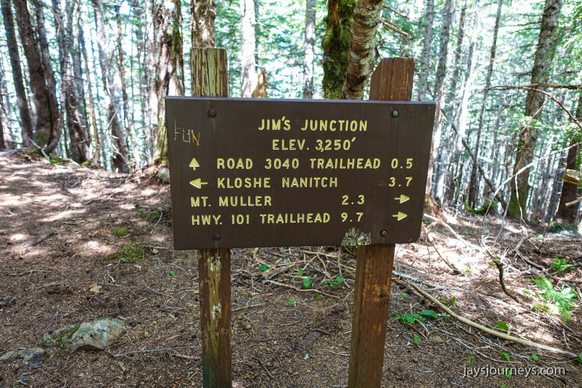 The trailhead can't be seen from the parking area. You have to park and walk to what looks like the end of the road and then follow the old road bed for a ways.You follow along the Sol Duc River along the old road bed. We found a spot to access the river on the way back and took a dip in it. It was freezing but felt nice since it was a really hot day.There were lots of flowers out. This is a macro of some growing up through some moss on the old road bed.At almost a half mile you'll come to the actual trailheadKloshe Nanitch TrailKloshe Nanitch TrailWild rose seen on the Kloshe Nanitch TrailKloshe Nanitch TrailKloshe Nanitch TrailAquilegia-formosa (Red Columbine)Allotropa virgata (Sugarstick) https://en.wikipedia.org/wiki/AllotropaThis was really the only confusing part. We took a left and went up to Kloshe Nanitch from here. The lookout loop is actually just the Snider Ridge trail that connects with the road further up near North Point. If you look at the map I added below, you can see a sort of loop.Shortly after that loop junction you'll enter a clearing. If you look up, you'll see the lookout platform above.Just a big carpenter ant I saw along the way.Cornus unalaschkensis (Bunchberry)Hmmm, not sure what this is unless it is the top of a beargrass bloom. It's not a very good image to do a comparison. If you know what it is, let me know in the comments.The trail eventually spits you out at this parking area for the lookout. Yes, you can drive up here. The lookout is just on the other side of those trees.The path to the former lookoutView of Mt Olympus from the lookout.Paul checking out the platform of the former lookout.The road that goes from Kloshe Nanitch to North Point. Keep your eyes open here and you'll find the Snder Ridge Trail off to the right.This is North Point. Unclear if this was ever a lookout site or if there has always been a radio tower here.Looking back out towards Kloshe Nanitch from North Point.Trail junction from the road access to the trail. Half mile to Kloshe Nanitch or 5 miles to Mt Muller via the Snider Ridge Trail.Much of the Snider Ridge Trail looks like this. A wide swath through the trees on the ridge top. Lot of ups and downs.Notice all the winter pine duff and branches on the trail. It appears to get little use.Paul taking a break along the ridge. There were a lot more ups and downs than we were expecting!Interesting tree. Do you think it was broken in two places when it was younger but continued to grow? It sure looks that way.Mt Olympus view from a clearing along the ridge.Mt Olympus view from a clearing along the ridge.Lake Crescent from a clearing along the ridgeTHe valley below the ridge and Sol Duc valley in the distance.Views from the ridgeA nice meadow or clearing on the ridge. You'd be surprised what Washington hikers would consider a meadow.I believe this is a Lilium columbianum (Columbia Lily)A nice meadow or clearing on the ridge. You'd be surprised what Washington hikers would consider a meadow.A 120 degree panorama looking Easterly, South and Westerly directions.Interesting rock formation along the ridge.Beargrass Bloom