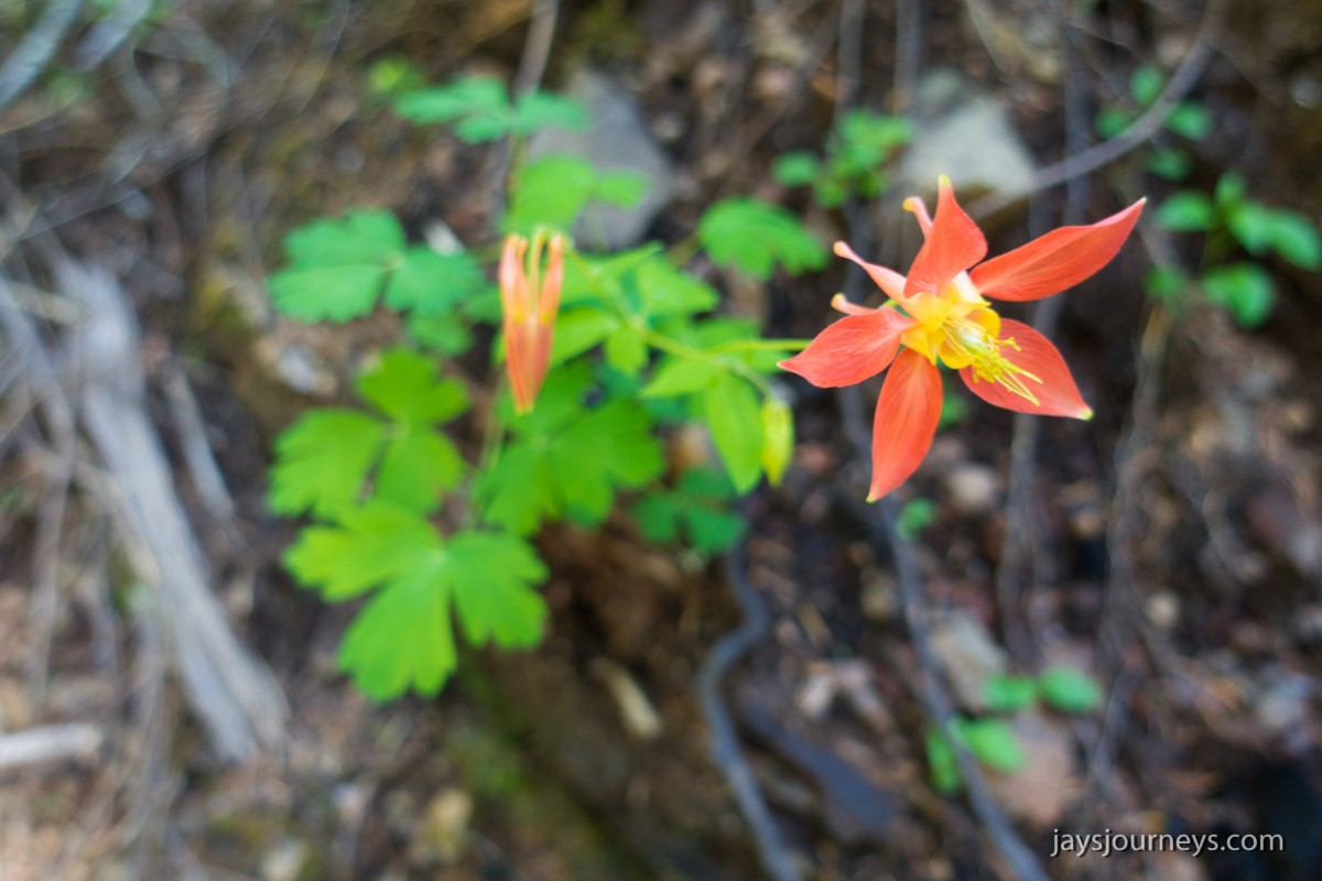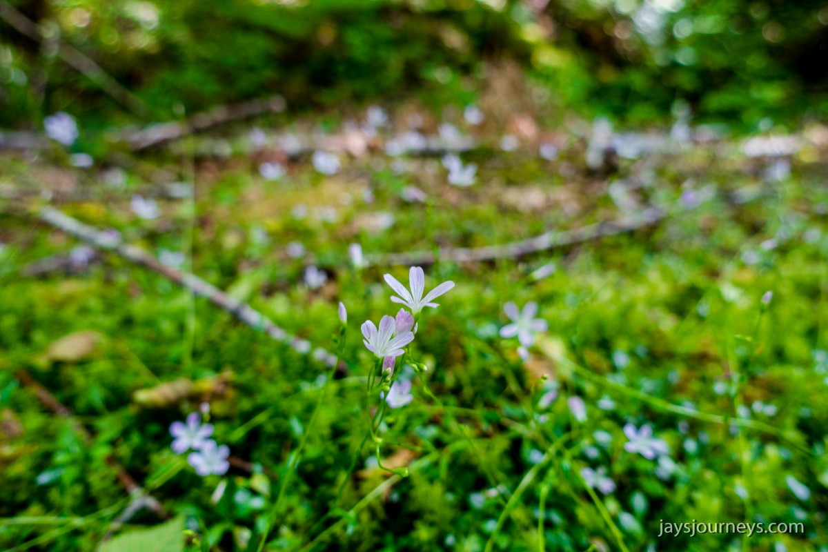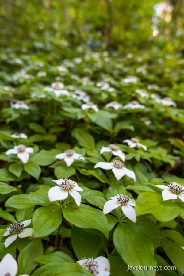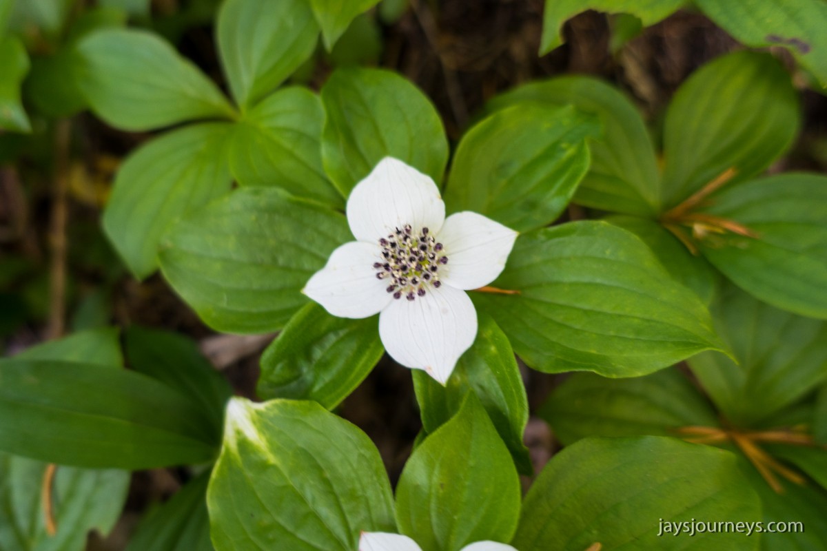 There was a broken bridge over one of the streams on the Kloshe Nanitch Trail.There was lots of Bunchberry (Cornus unalaschkensis)