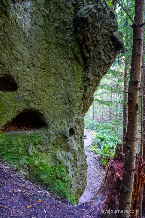 On Father's Day this year, my son and I set out to find Tamanowas Rock. There is not a lot of information online about Tamanowas Rock, but according to Wikipedia: "Tamanowas Rock (also spelled Tamanous), also called Chimacum Rock, is a 150-foot (46 m):169 high rock with caves and crevices that lies in a forest adjacent to Anderson Lake State Park, near Port Townsend, Washington. It is a sacred site to the Coast Salish peoples of the Pacific Northwest and a pilgrimage site. The rock was listed on the National Register of Historic Places in 2015."