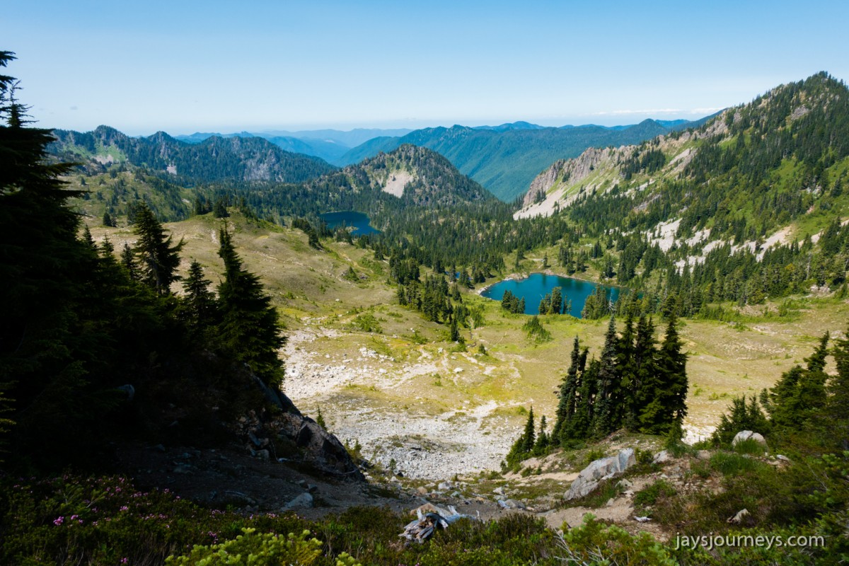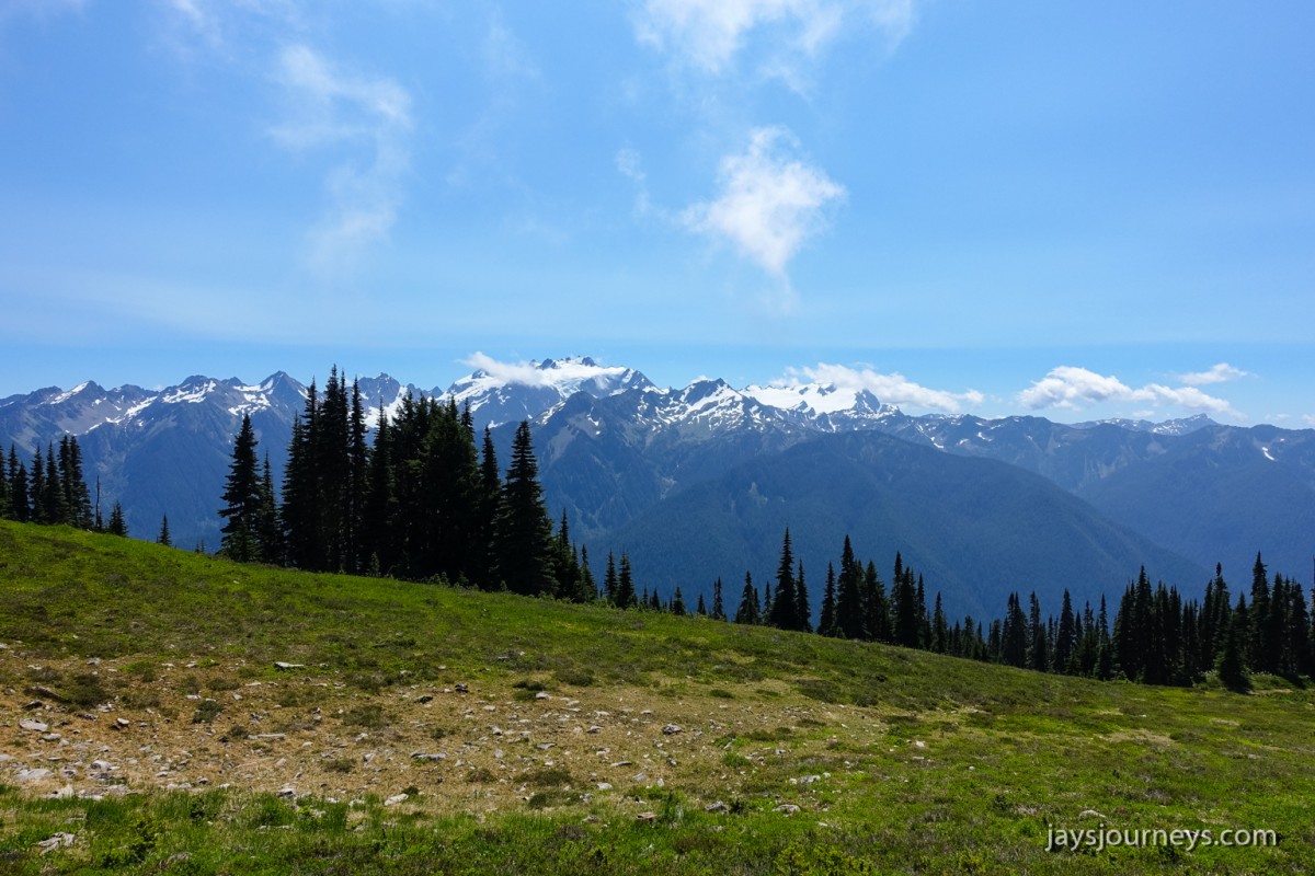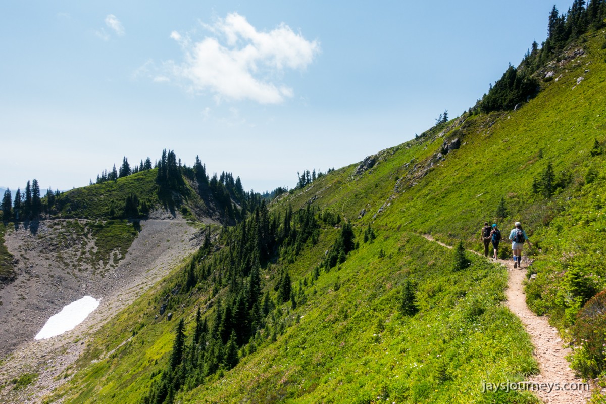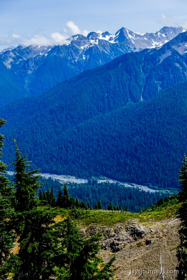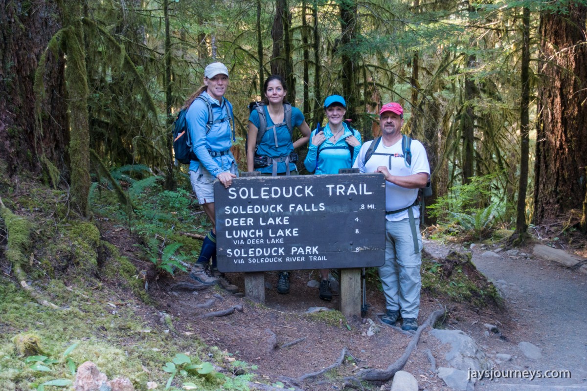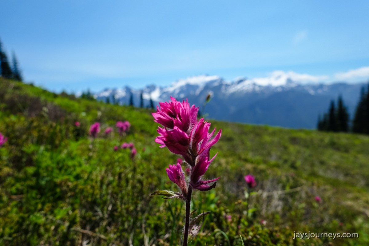 Group shot, minus me. Left to Right - Deborah, Jessica, Patti, and PaulNorth Fork Sol Duc TrailPink (or Red) Mountain HeatherNorth Fork Sol Duc River Trail just below Heart Lake.Selfie above Heart Lake.Patti and Jessica on the High Divide. Mt Olympus in the background.Magenta Indian PaintbrushMt Olympus from what I call the "Miracle Mile" on the High Divide.Olympus from the High DivideLake Number 8 and Morgenroth Lake in the distanceAmazing ridge walking on the divideAmazing ridge walking on the divideMountain AsterBeautiful trail!Bogachiel Peak and Seven Lakes BasinLots of Bear Grass BloomsSeven Lakes BasinSeven Lakes BasinSeven Lakes Basin from Bogachiel PeakGroup shot on Bogachiel PeakPaul on Bogachiel PeakTo continue the loop, we take a right at the low point (saddle) near the center of the image. The trail to left of center continues down to Hoh Lake and the Hoh River. The steep bank immediately to our right is Bogachiel Peak. Not pictured is the short spur trail near here that leads to the top of Bogachiel Peak.This is looking back at the saddle we just passed. This view of Mt. Olympus is iconic, and has graced the cover of at least one trail guide as well as several magazines over the years.Flowers still in bloom!Flowers still in bloom!The long and winding pathIt was such a great day!Paul on the downhill now.You have to love walking in the forest and coming up to an opening in the trees with a view like this.One of several lakes you pass on the way back to the trailhead.Big Tree ButtLots of HuckleberriesSol Duc FallsSol Duc ShelterOn Sol Duc Hot Springs Rd, a tree had fallen across the road making it impossible to drive out.Luckily for us, Jessica had an axe in her truck and everyone trying either to escape or get to the trailhead, came together and cut the tree and moved it by hand.Working together to move the fallen tree.Thanks Jessica!Thanks for looking at my High Divide report!