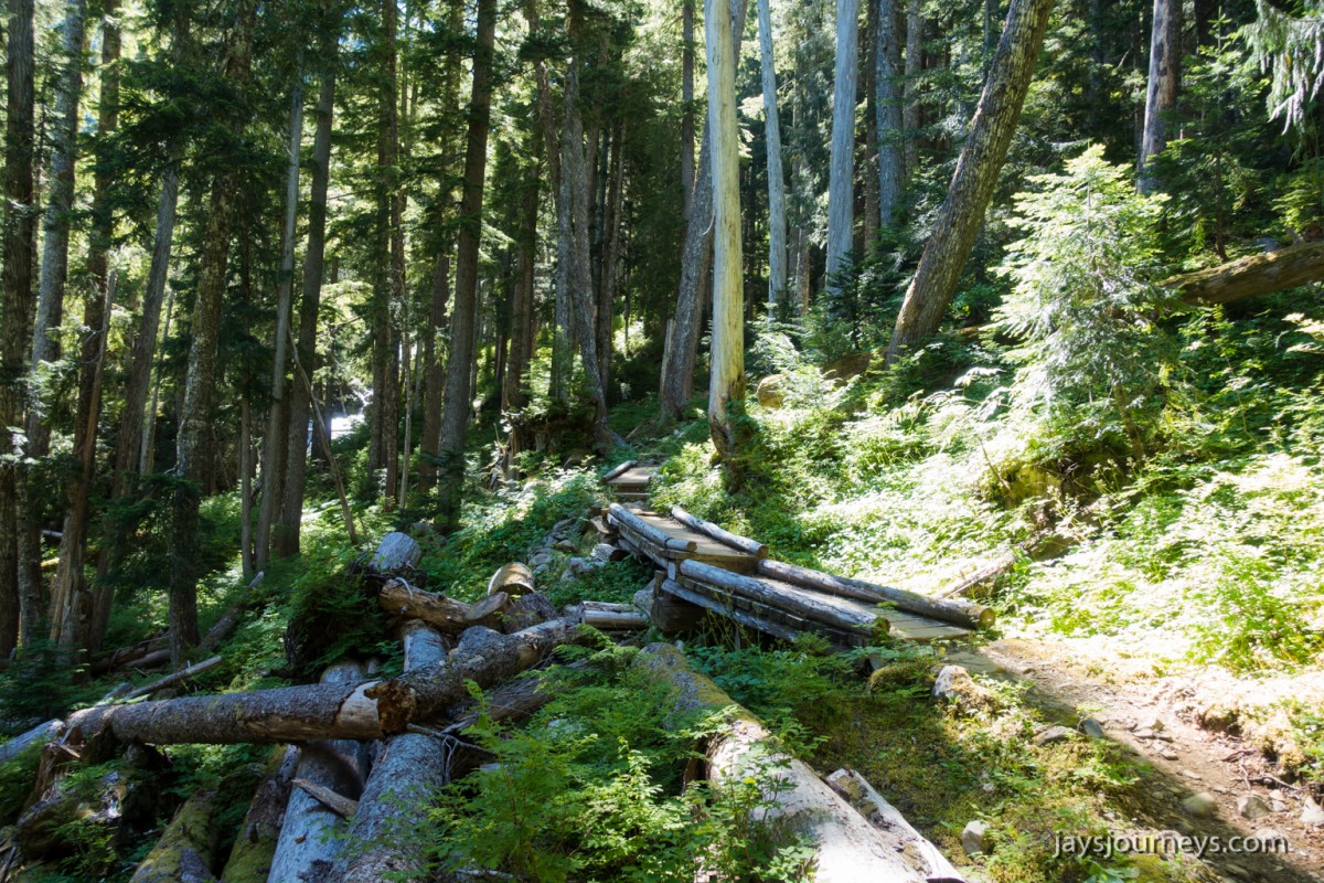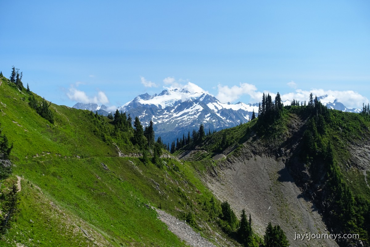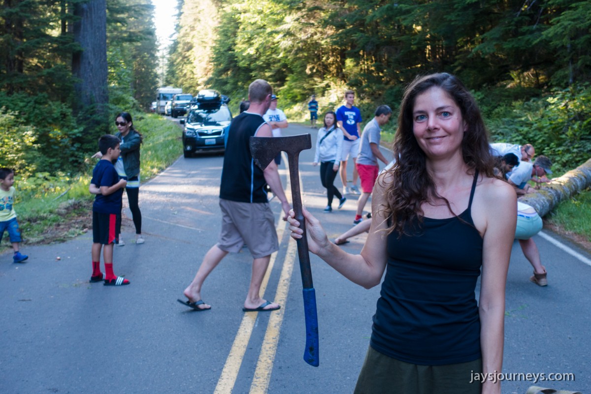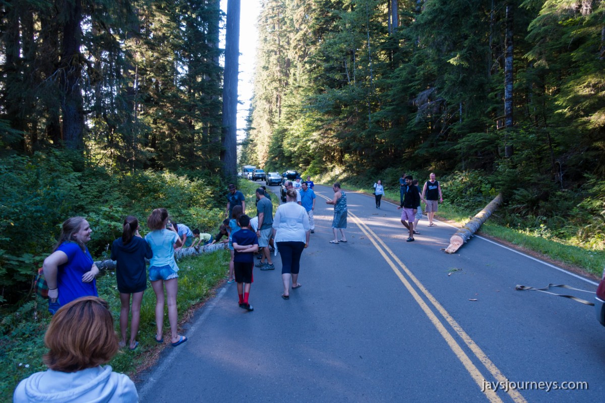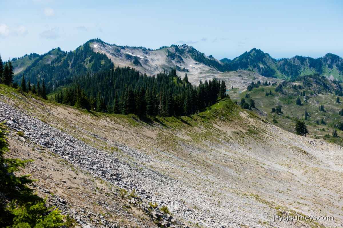 Group shot, minus me. Left to Right - Deborah, Jessica, Patti, and PaulNorth Fork Sol Duc TrailPink (or Red) Mountain HeatherNorth Fork Sol Duc River Trail just below Heart Lake.Selfie above Heart Lake.Patti and Jessica on the High Divide. Mt Olympus in the background.Magenta Indian PaintbrushMt Olympus from what I call the "Miracle Mile" on the High Divide.Olympus from the High DivideLake Number 8 and Morgenroth Lake in the distanceAmazing ridge walking on the divideAmazing ridge walking on the divideMountain AsterBeautiful trail!Bogachiel Peak and Seven Lakes BasinLots of Bear Grass BloomsSeven Lakes BasinSeven Lakes BasinSeven Lakes Basin from Bogachiel PeakGroup shot on Bogachiel PeakPaul on Bogachiel PeakTo continue the loop, we take a right at the low point (saddle) near the center of the image. The trail to left of center continues down to Hoh Lake and the Hoh River. The steep bank immediately to our right is Bogachiel Peak. Not pictured is the short spur trail near here that leads to the top of Bogachiel Peak.This is looking back at the saddle we just passed. This view of Mt. Olympus is iconic, and has graced the cover of at least one trail guide as well as several magazines over the years.Flowers still in bloom!Flowers still in bloom!The long and winding pathIt was such a great day!Paul on the downhill now.You have to love walking in the forest and coming up to an opening in the trees with a view like this.One of several lakes you pass on the way back to the trailhead.Big Tree ButtLots of HuckleberriesSol Duc FallsSol Duc ShelterOn Sol Duc Hot Springs Rd, a tree had fallen across the road making it impossible to drive out.Luckily for us, Jessica had an axe in her truck and everyone trying either to escape or get to the trailhead, came together and cut the tree and moved it by hand.Working together to move the fallen tree.Thanks Jessica!Thanks for looking at my High Divide report!