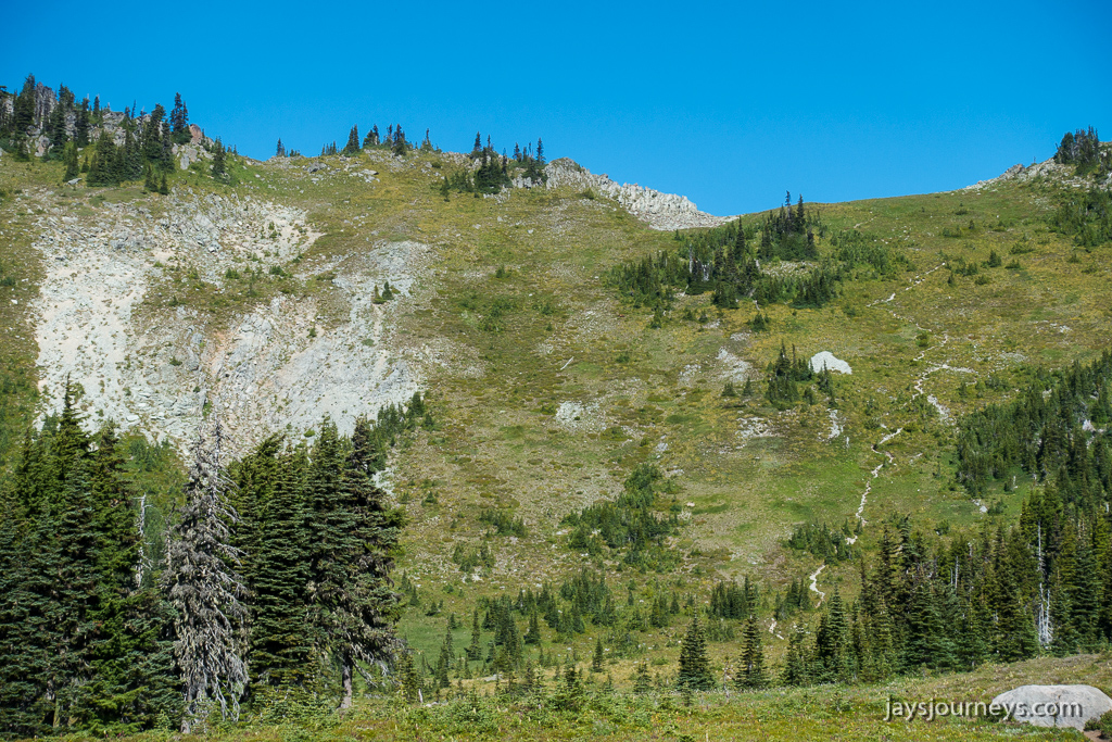 About half way through Spray Park, we decided we just weren't feeling it and decided to do something a little easier. We decided to do a different loop I call the Knapsack Pass Loop, only we would do it in reverse. Start at Mowich, hike through Spray Park and on to Seattle Park then turn around at the high point of the trail at Seattle Park and hit the way trail that goes over Knapsack Pass. It turned out to be a great decision.