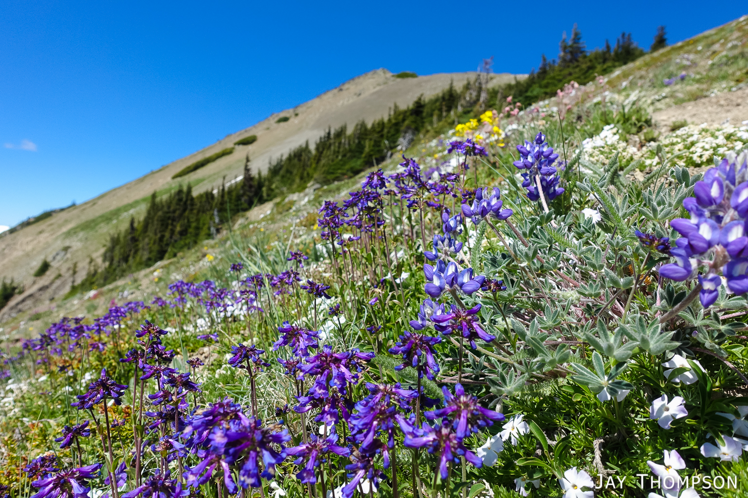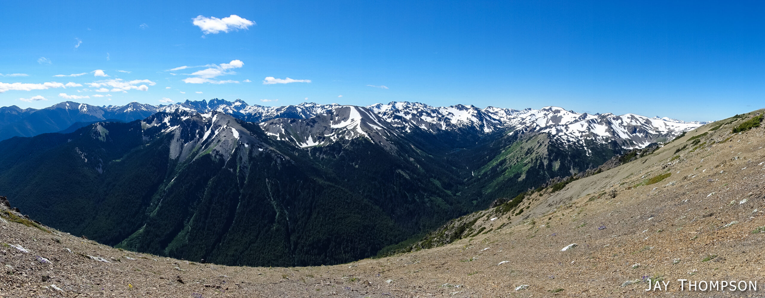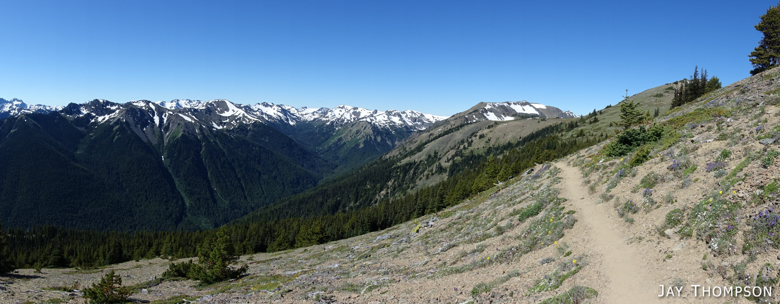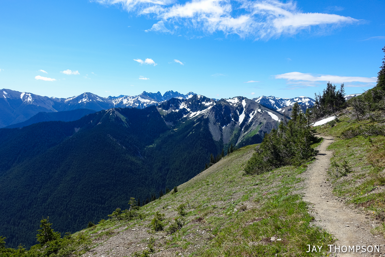 This trail has perhaps the best display of Avalanche lilies I have ever seen. This hike was no exception. If you want to see this for yourself, you need to get up here early, soon after the snow melts.Nice trailThe trail drops down from Deer Park 300-400 feet and is forested for the first couple miles.Before too long the trail gradually climbs again and opens up to the most spectacular views. In my humble opinion, hiking this trail on a cloudy day would be a major bummer since you're going to miss (as Bruce Lee would say) all that heavenly glory!Hard to not enjoy days like thisBecause the views don't suck!Maiden Lake directly below. The body of water in the distance is the Straight of Juan de Fuca. To the upper left of the frame you can see Ediz Hook and part of Port Angeles.My friends Cheryl and Stephanie can barely be seen in the distance.My friends Cheryl and Stephanie can barely be seen in the distance.Spectacular views everywhere you look.Spectacular views everywhere you look.Spectacular views everywhere you look.Great name for a campsite. I think I'll pass.Grand ValleyLooking back along the ridge. You can see almost the entire route from here. The far mountain that is partly forested and partly green on top is Blue Mountain. The start of the hike was just this side of that mountain.I looked back and could see Cheryl and Stephanie sitting there on that point. You can just barely (not really) see them. I kept looking back over 30 minutes or so and they weren't moving so I figured they were not going any further.Selfie timeSome kind of thistle maybe?The line across the side of the mountain in the distance is the Hurricane Ridge Road.Panoramic view from Grand Ridge.Grand Ridge TraIlNice flowers everywhereWild Olympic Mountain onions. YummGrand Ridge TrailGrand Ridge TrailGrand Ridge TrailGrand Ridge TrailGrand Ridge TrailCheryl and Steph. Cheryl doesn't like to have her picture taken so I always try to get at least one, LOL. Look at her hiding under her hat, haha. I'm not sure why she doesn't invite me along on more hikes...Glacier LiliesAvalanche Lilies