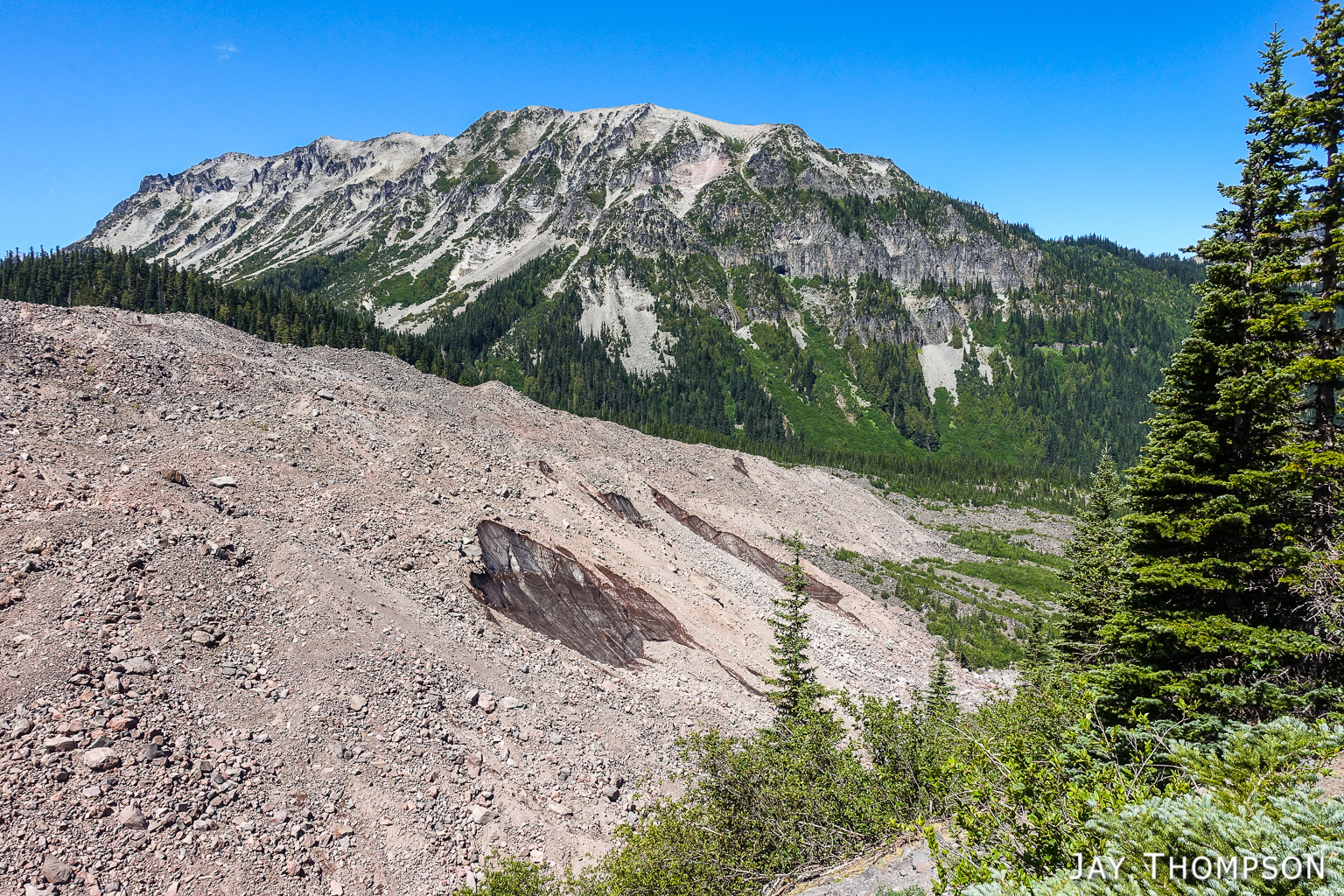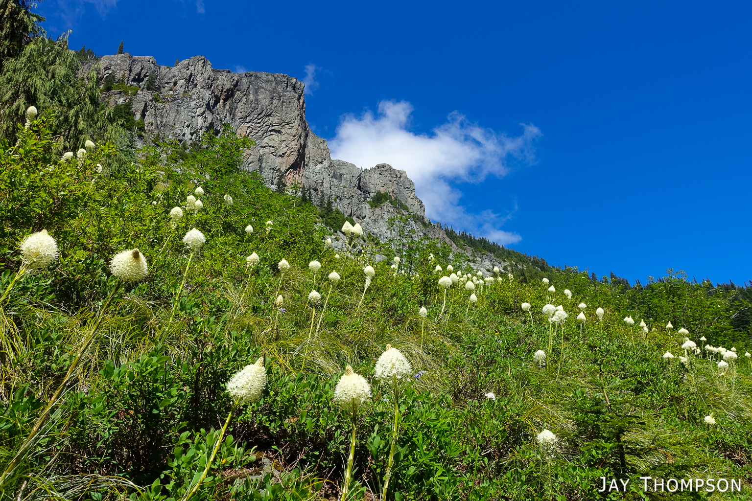 We stopped here under the Yellowstone Cliffs for a nice break and to filter some water. We had just finished the hardest part of the climb out of the Carbon River drainage.
