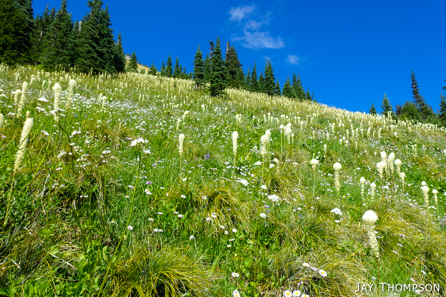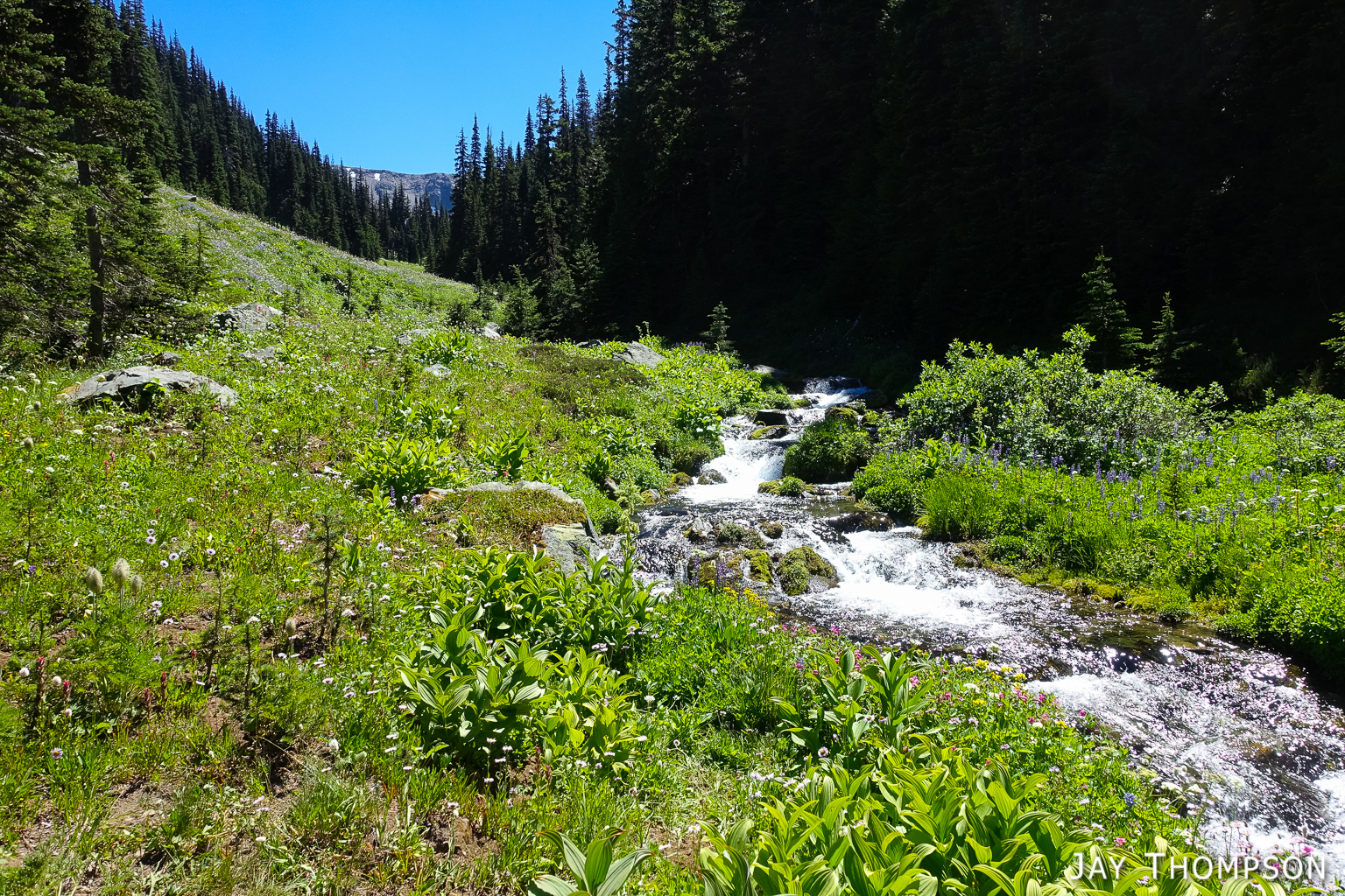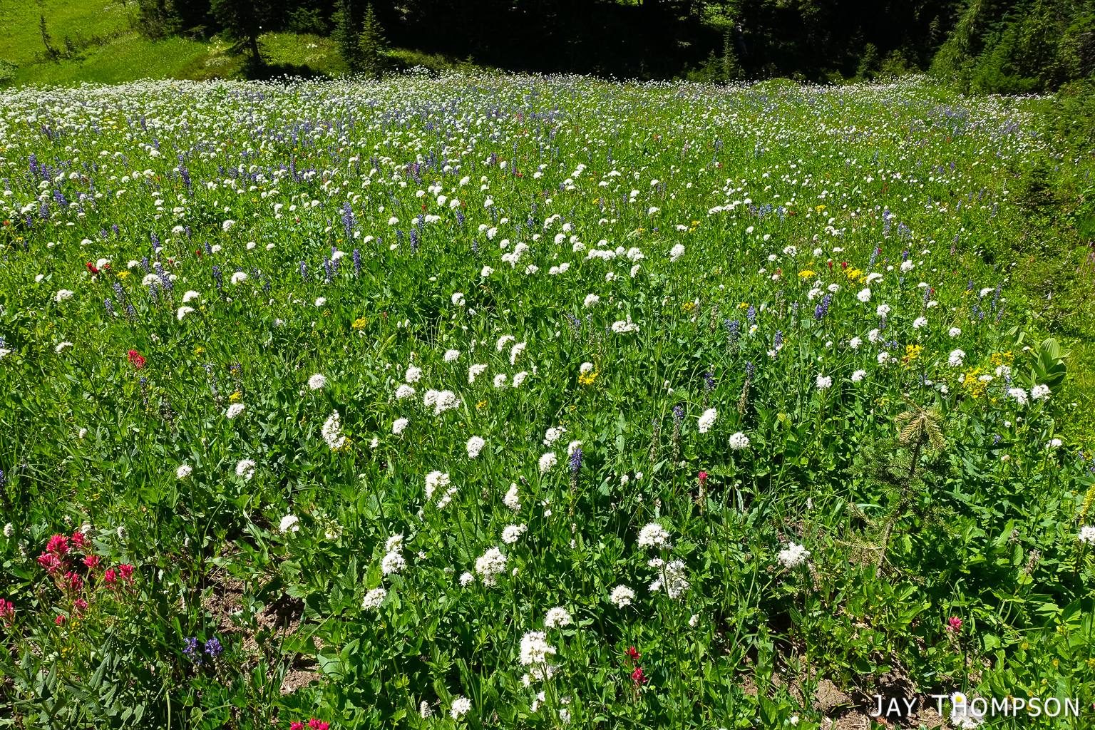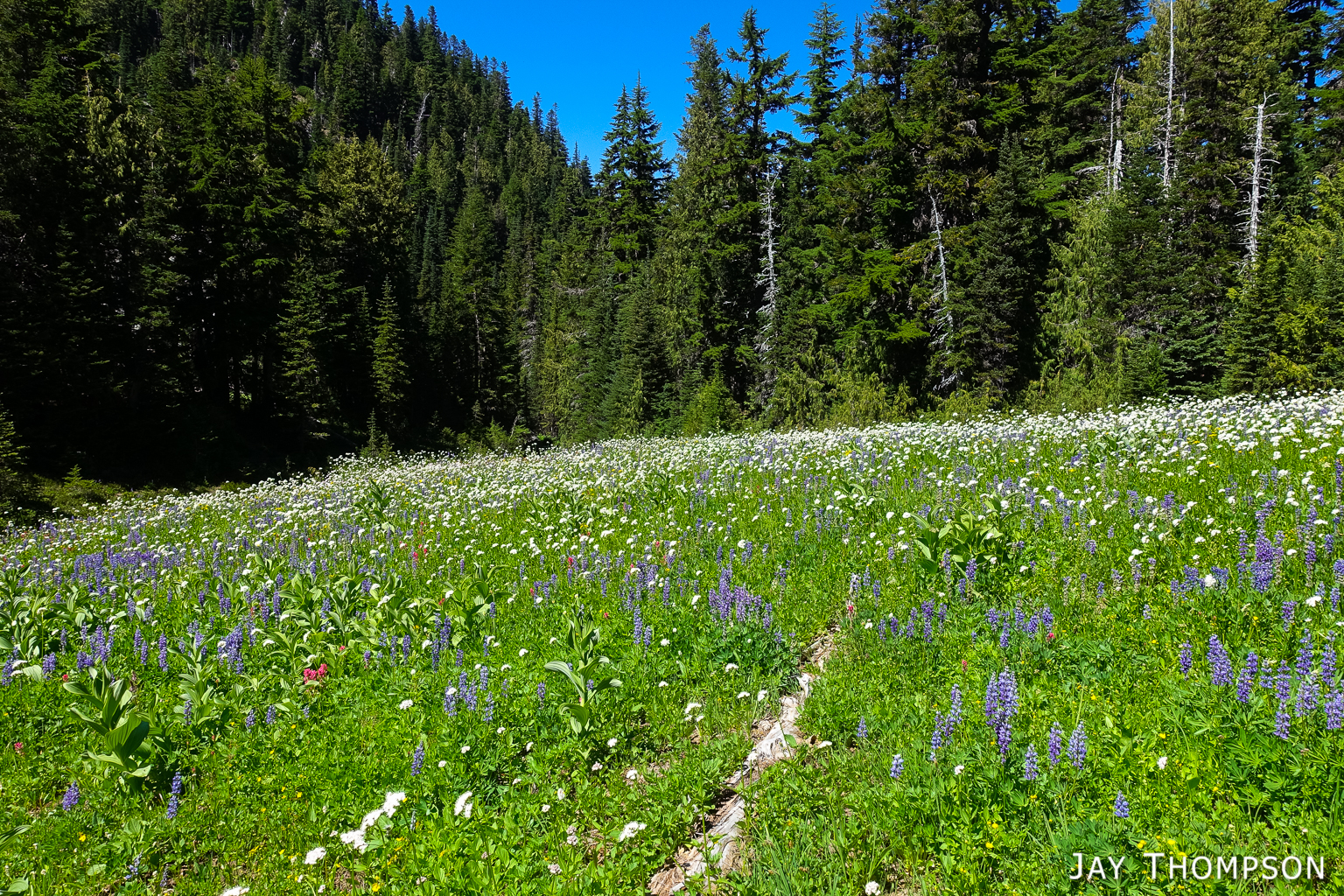 Looking back down at the White river after climbing out of the drainage. We were way up there by the Winthop Glacier just two days prior.Grand Park. This is a really neat place. It's a big flat plateau. After all the ups and downs over the last couple days, this was a nice break. The Fremont lookout is at the top of that pointKatie and Lance in Grand ParkKatie and Lance in Grand ParkLance and I in Grand Park. I think he was hiding from the sun or maybe the bugs? LOLBerkely Park. The flowers were just out of control.Berkely Park. The flowers were just out of control.Berkely Park. It was near here that I drank some unfiltered water that was flowing out of the side of the hill. A few days later I got Giardia or something and had to take antibiotics for ten days to get my system back on track.Berkely Park.Berkely Park. The flowers were just out of control.Berkely Park. The flowers were just out of control.Berkely Park.Berkely Park. Climbing out of here was pretty tough. I wasn't counting on so much more elevation gain after leaving Grand Park. A park ranger I passed as I was almost over the hump going back into Sunrise asked if I was OK, LOL. I must have looked pretty rough. This was a fun trip but a lot harder than I was expecting. So worth it though.