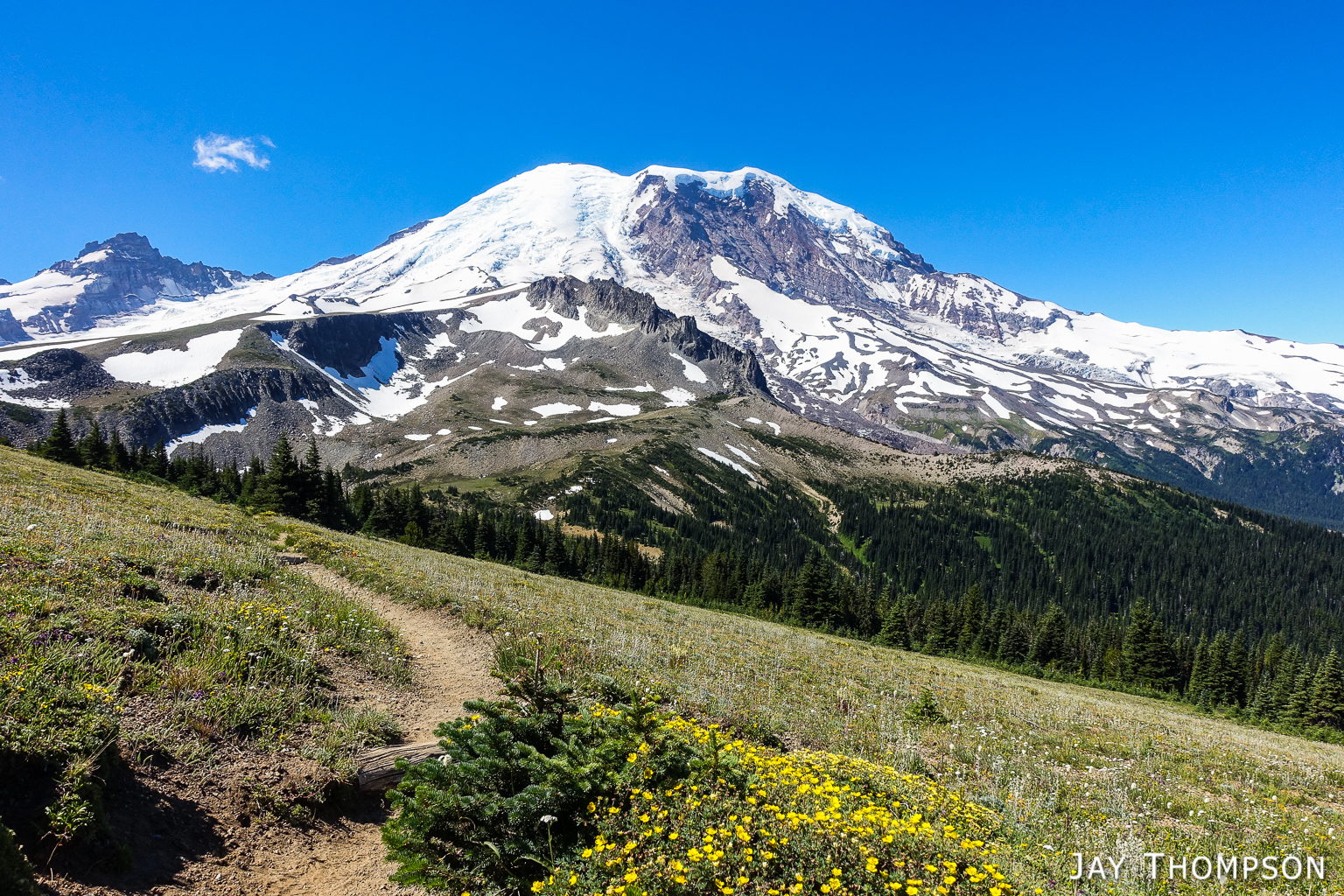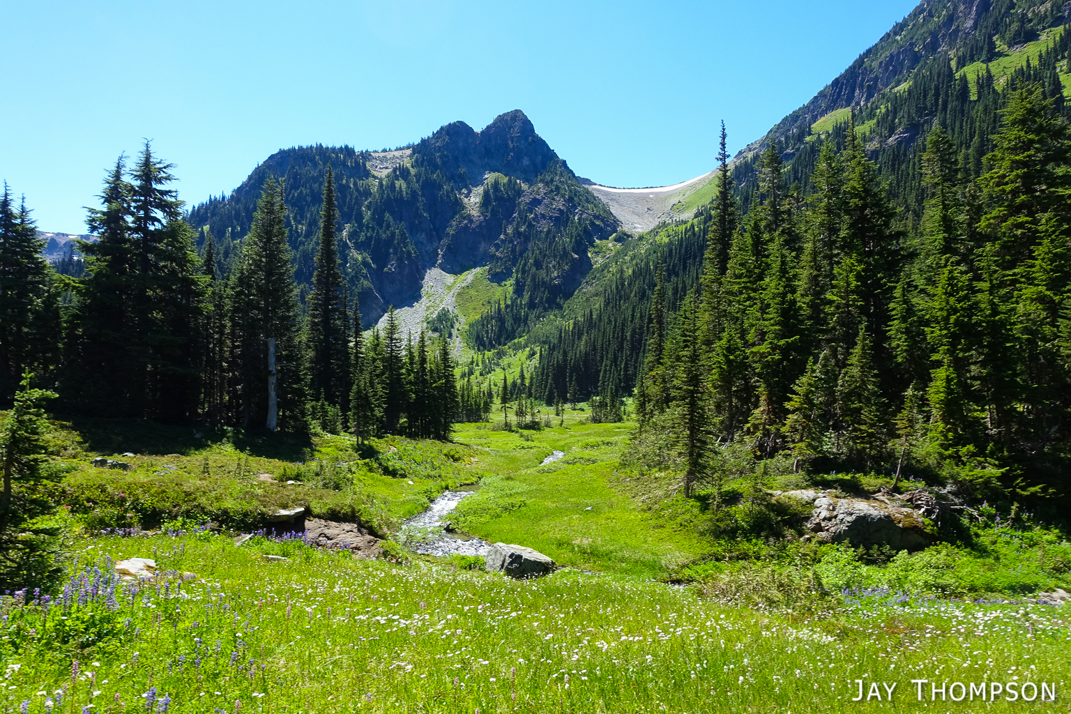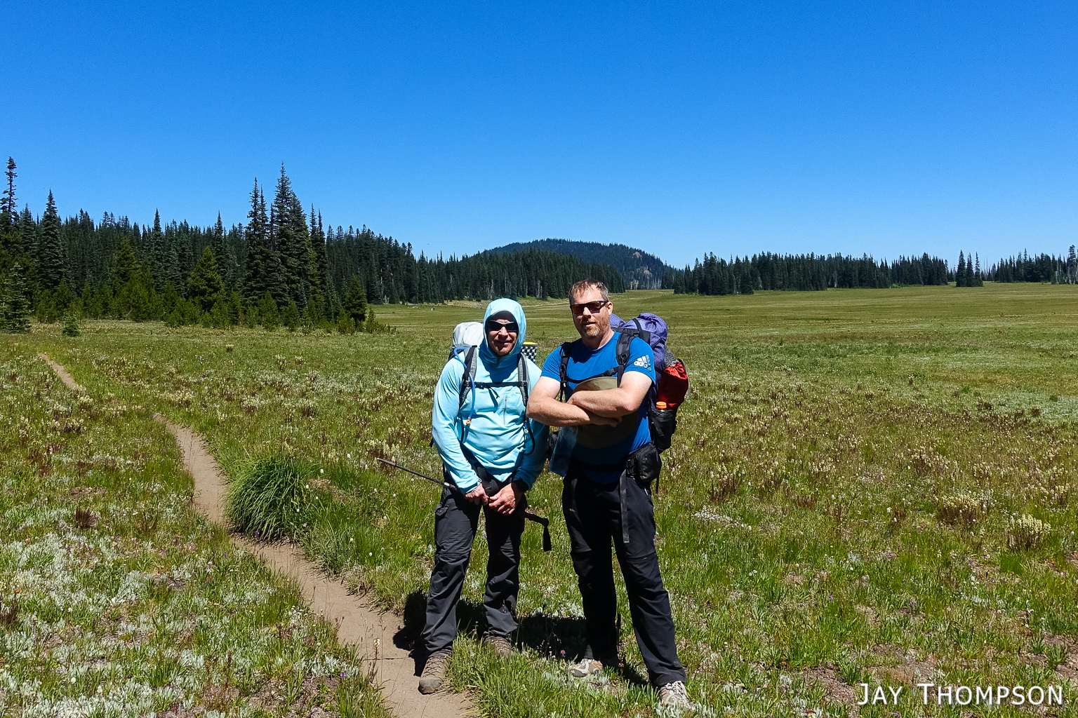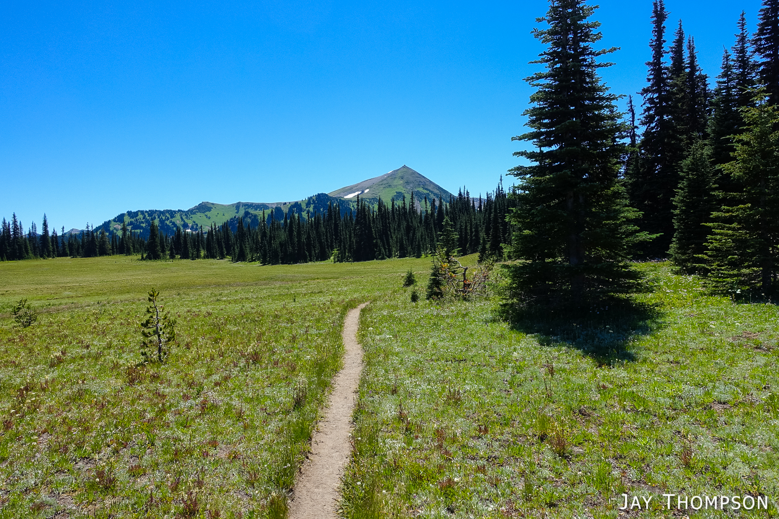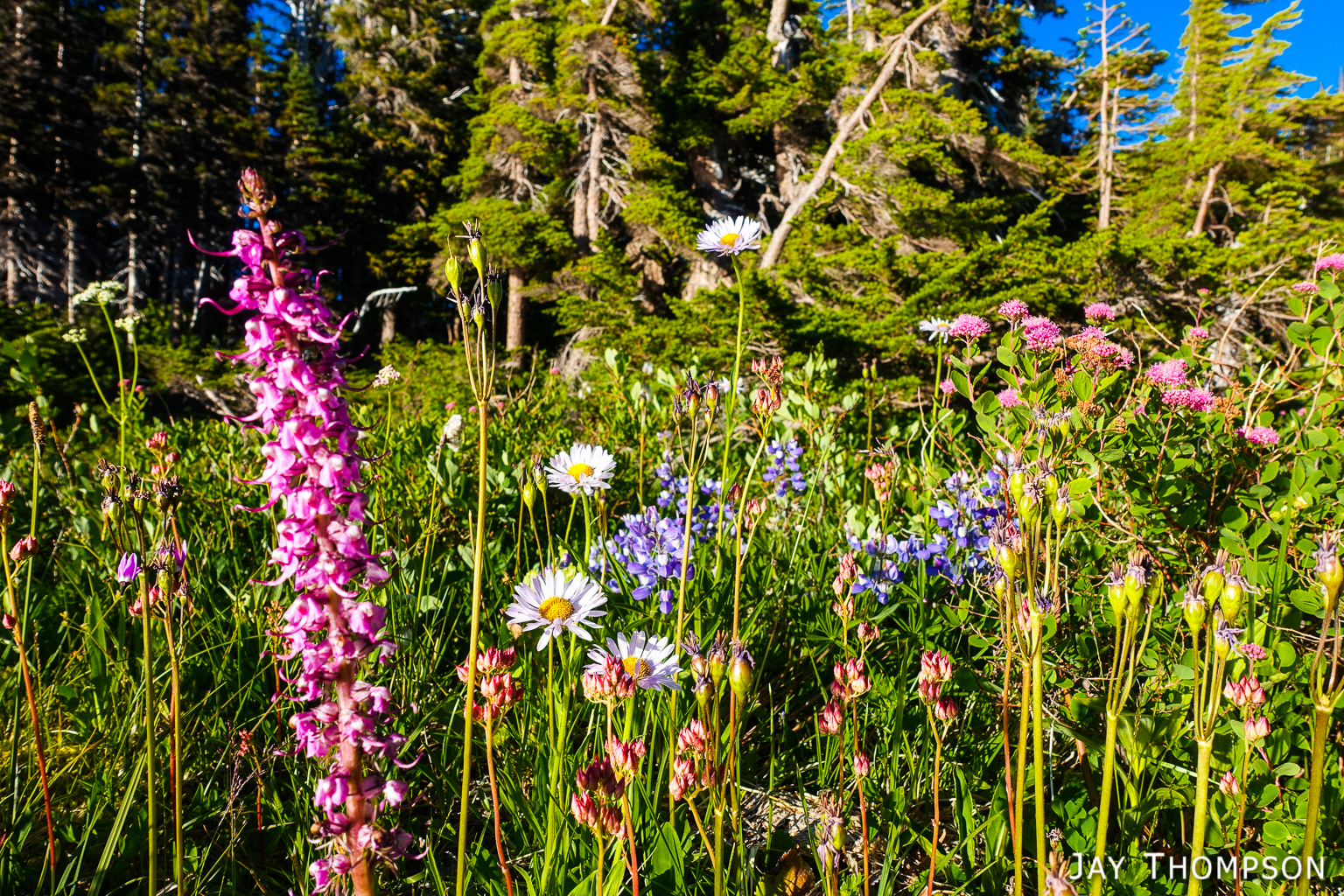 Looking back down at the White river after climbing out of the drainage. We were way up there by the Winthop Glacier just two days prior.Grand Park. This is a really neat place. It's a big flat plateau. After all the ups and downs over the last couple days, this was a nice break. The Fremont lookout is at the top of that pointKatie and Lance in Grand ParkKatie and Lance in Grand ParkLance and I in Grand Park. I think he was hiding from the sun or maybe the bugs? LOLBerkely Park. The flowers were just out of control.Berkely Park. The flowers were just out of control.Berkely Park. It was near here that I drank some unfiltered water that was flowing out of the side of the hill. A few days later I got Giardia or something and had to take antibiotics for ten days to get my system back on track.Berkely Park.Berkely Park. The flowers were just out of control.Berkely Park. The flowers were just out of control.Berkely Park.Berkely Park. Climbing out of here was pretty tough. I wasn't counting on so much more elevation gain after leaving Grand Park. A park ranger I passed as I was almost over the hump going back into Sunrise asked if I was OK, LOL. I must have looked pretty rough. This was a fun trip but a lot harder than I was expecting. So worth it though.