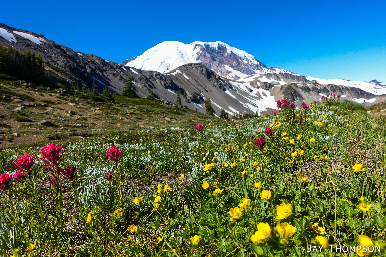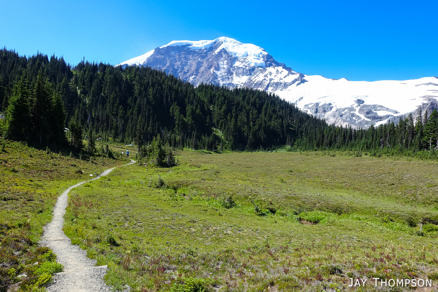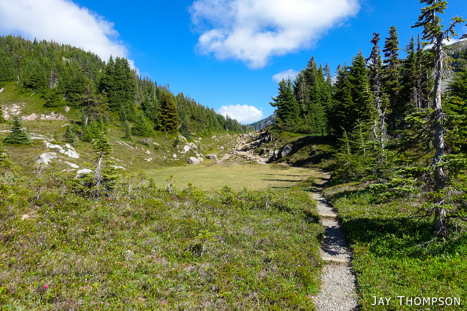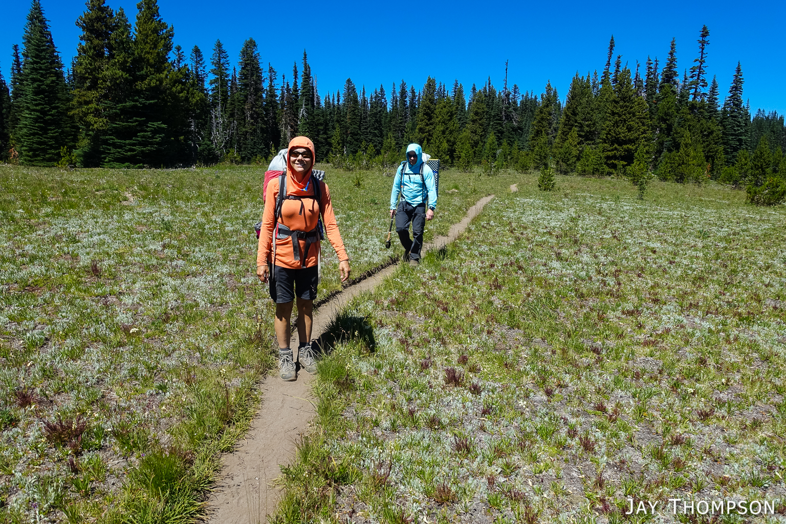 Looking back down at the White river after climbing out of the drainage. We were way up there by the Winthop Glacier just two days prior.Grand Park. This is a really neat place. It's a big flat plateau. After all the ups and downs over the last couple days, this was a nice break. The Fremont lookout is at the top of that pointKatie and Lance in Grand ParkKatie and Lance in Grand ParkLance and I in Grand Park. I think he was hiding from the sun or maybe the bugs? LOLBerkely Park. The flowers were just out of control.Berkely Park. The flowers were just out of control.Berkely Park. It was near here that I drank some unfiltered water that was flowing out of the side of the hill. A few days later I got Giardia or something and had to take antibiotics for ten days to get my system back on track.Berkely Park.Berkely Park. The flowers were just out of control.Berkely Park. The flowers were just out of control.Berkely Park.Berkely Park. Climbing out of here was pretty tough. I wasn't counting on so much more elevation gain after leaving Grand Park. A park ranger I passed as I was almost over the hump going back into Sunrise asked if I was OK, LOL. I must have looked pretty rough. This was a fun trip but a lot harder than I was expecting. So worth it though.