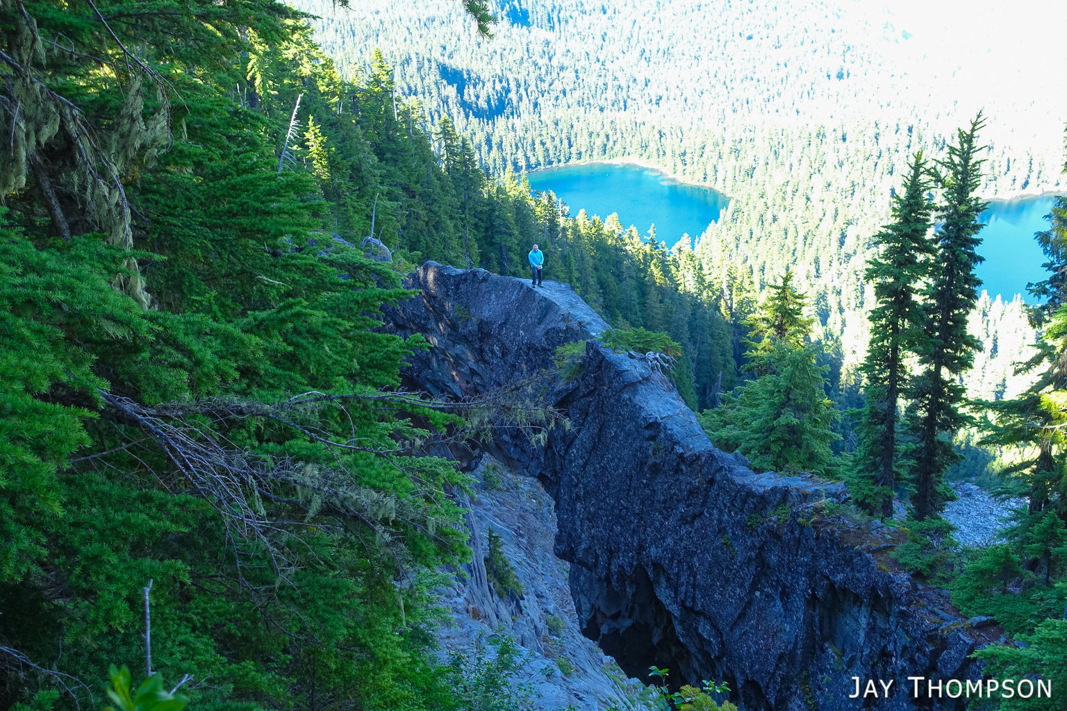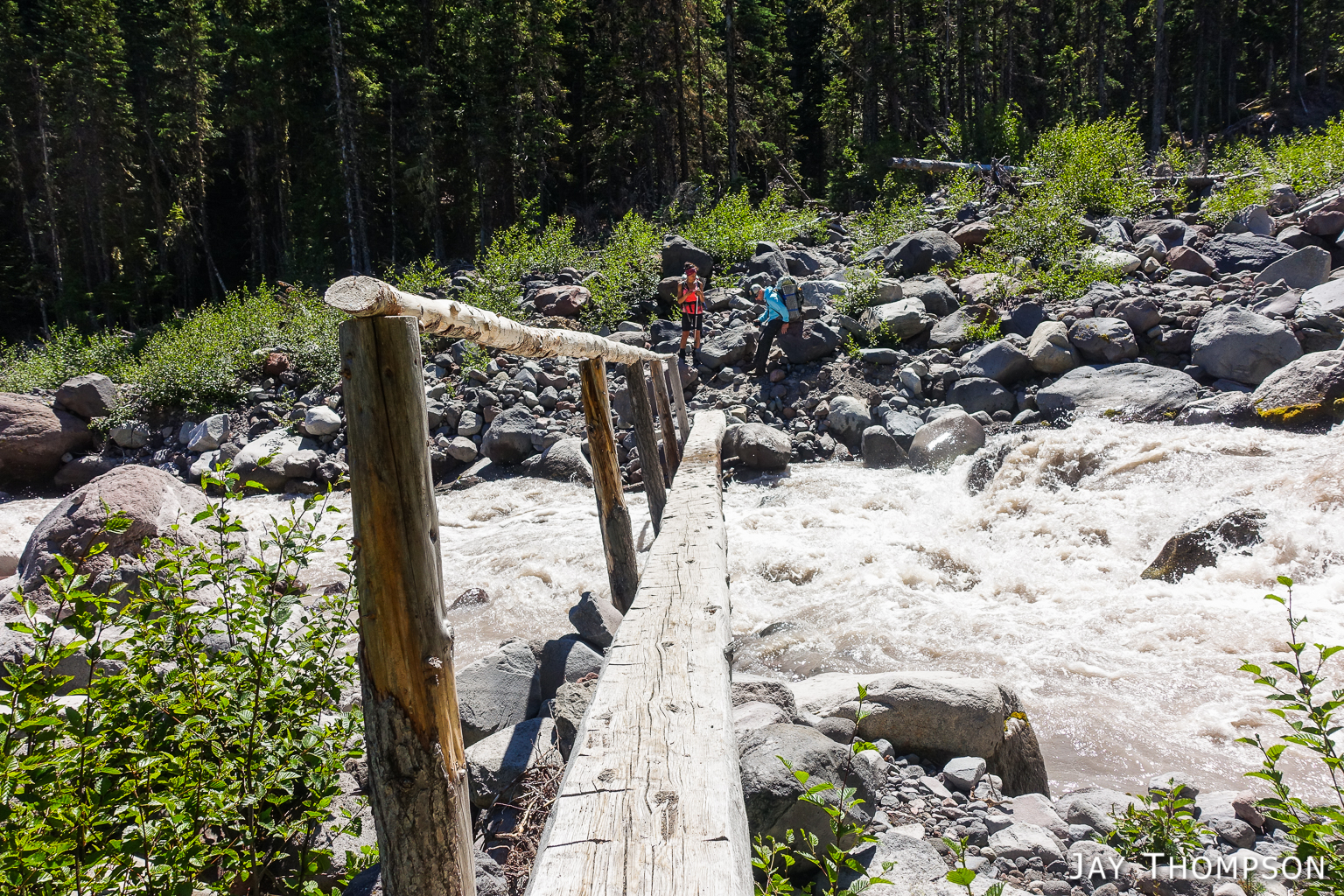 Tarn near Windy GapTarn near Windy GapTarn near Windy GapWe took the side trail to the Natural Bridge above Lake James and Lake Ethel.Lance wanted a closer look. I said he was nuts, LOL.We had a great view of the Fremont lookout from here. Can you see it?We camped at the Lake James camp sites. We were lucky to get a spot as the campground was pretty full. We got a group shot before heading out the last morning.The White RiverFording the White RiverFording the White RiverFording the White River