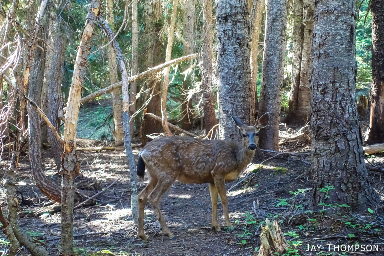 Beautiful Mystic Lake. The water was warm and the lake bottom was sandy and not muddy at all. We camped at the Mystic Campground near here.Mystic LakeMystic LakeA young deer near our camp. It hadn't quite shed all of its spots.Selfie time!Mystic Lake