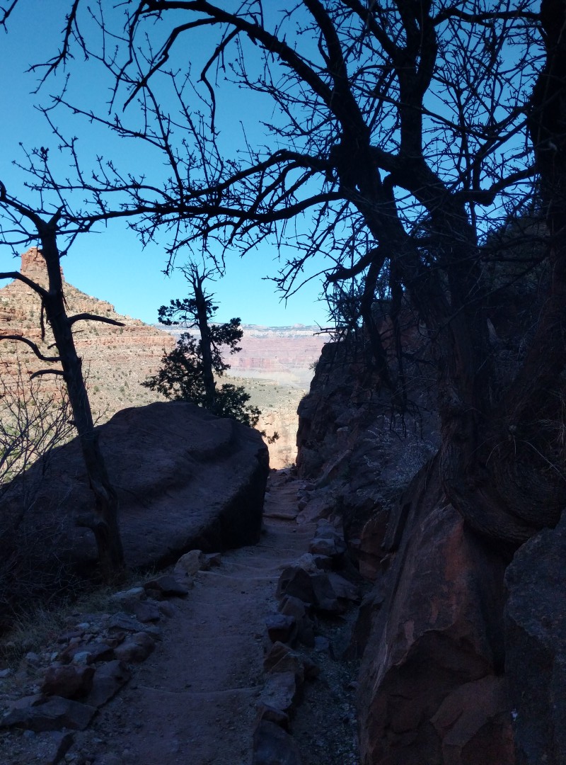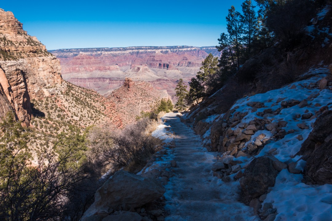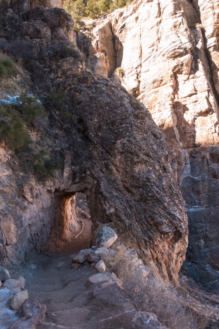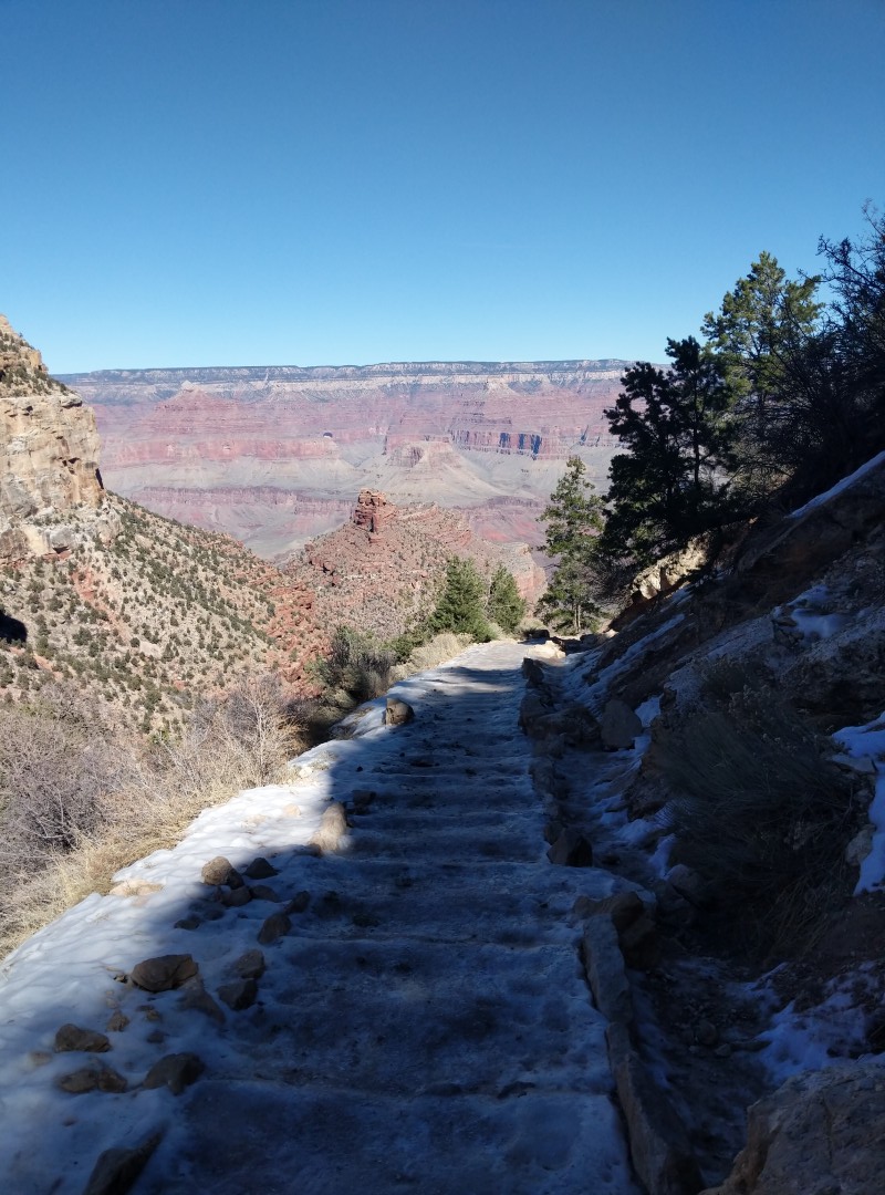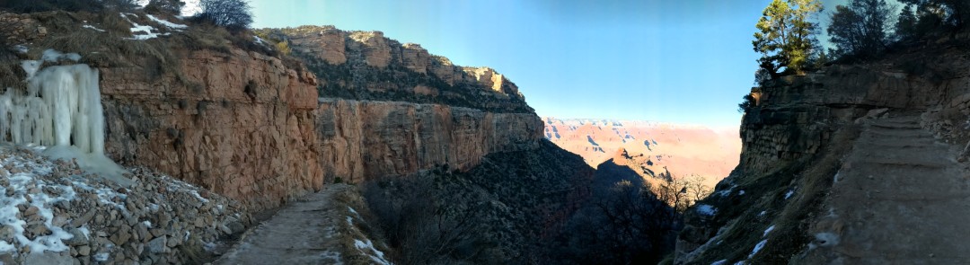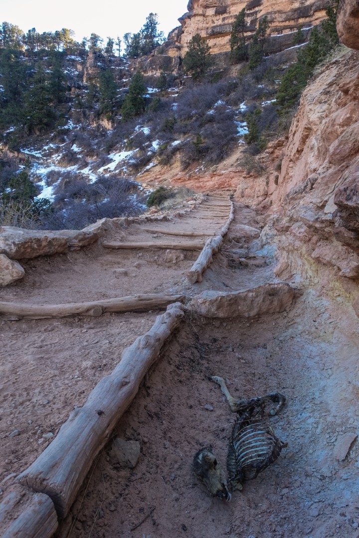 After my epic trip to Death Valley and visiting friends in Nevada, I kept driving and made it to the Grand Canyon. Now, I might be a little jaded because I have seen some pretty impressive views in my life from various mountain tops - but on my first time seeing the Grand Canyon, I was not as impressed as I thought I would be. Now don't get me wrong, it's impressive, it just wasn't the impact I thought it have have on me. I went there expecting to see a big open space, much like a mountain top view, and that's what I saw. I decided to hike a bit into the canyon on the Bright Angel Trail and ended up going just past the 3 Mile Resthouse and back. It was icy near the top so I was glad to have some traction on my feet.