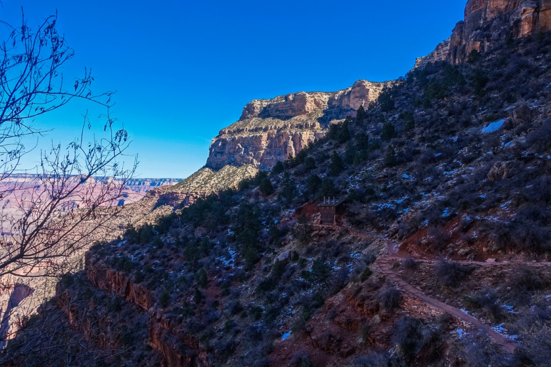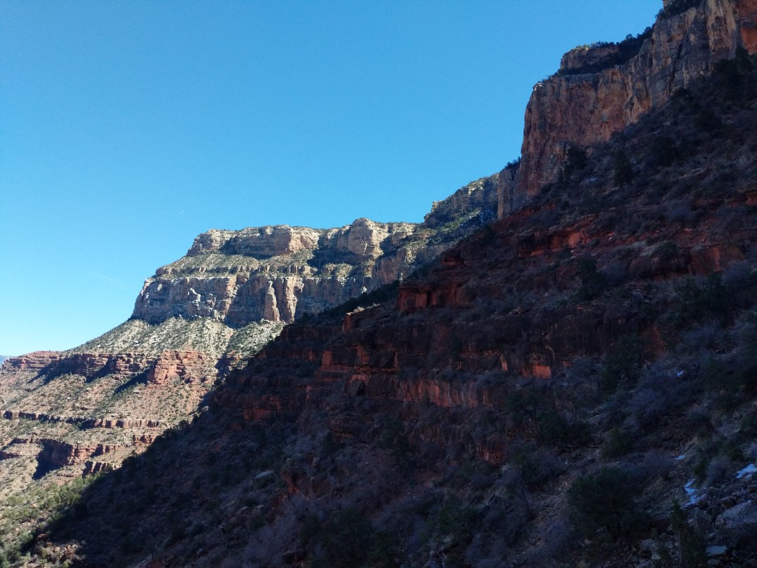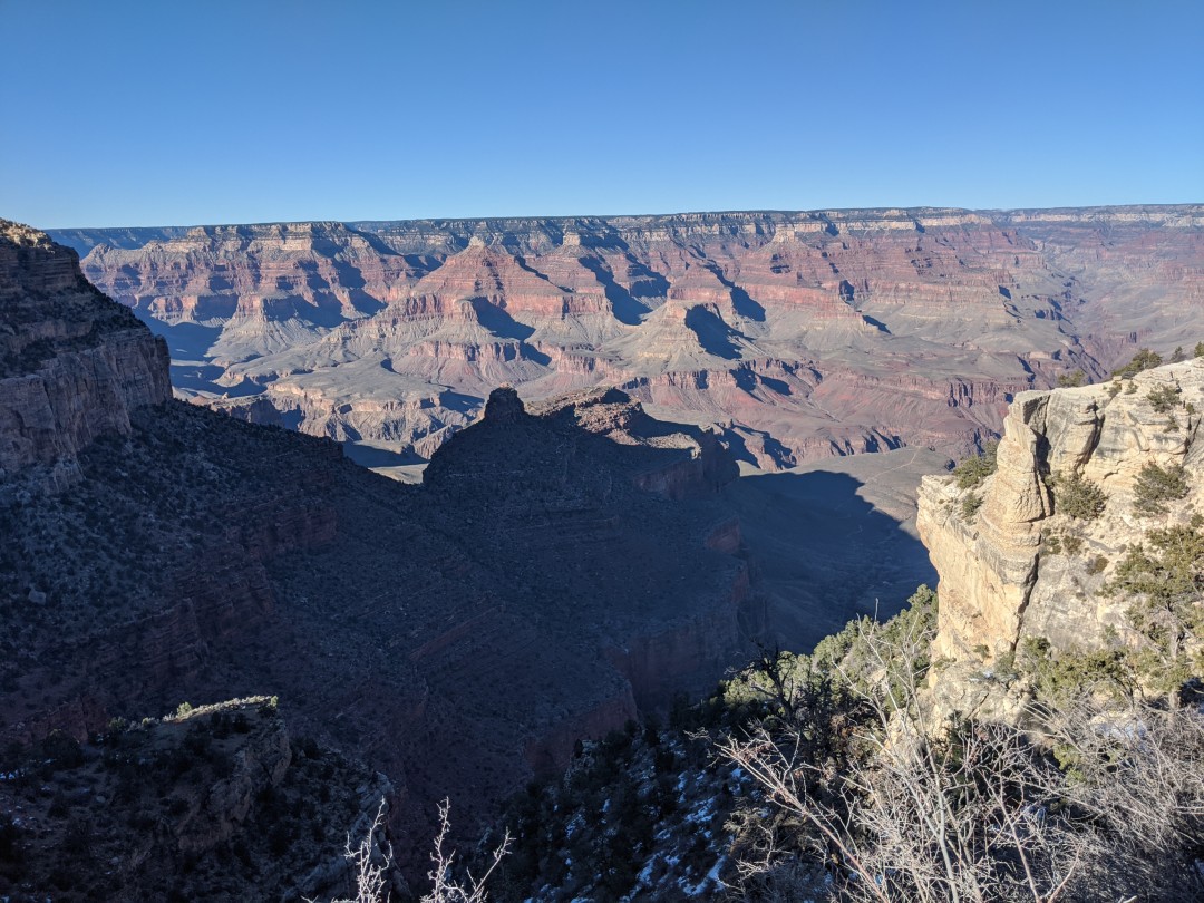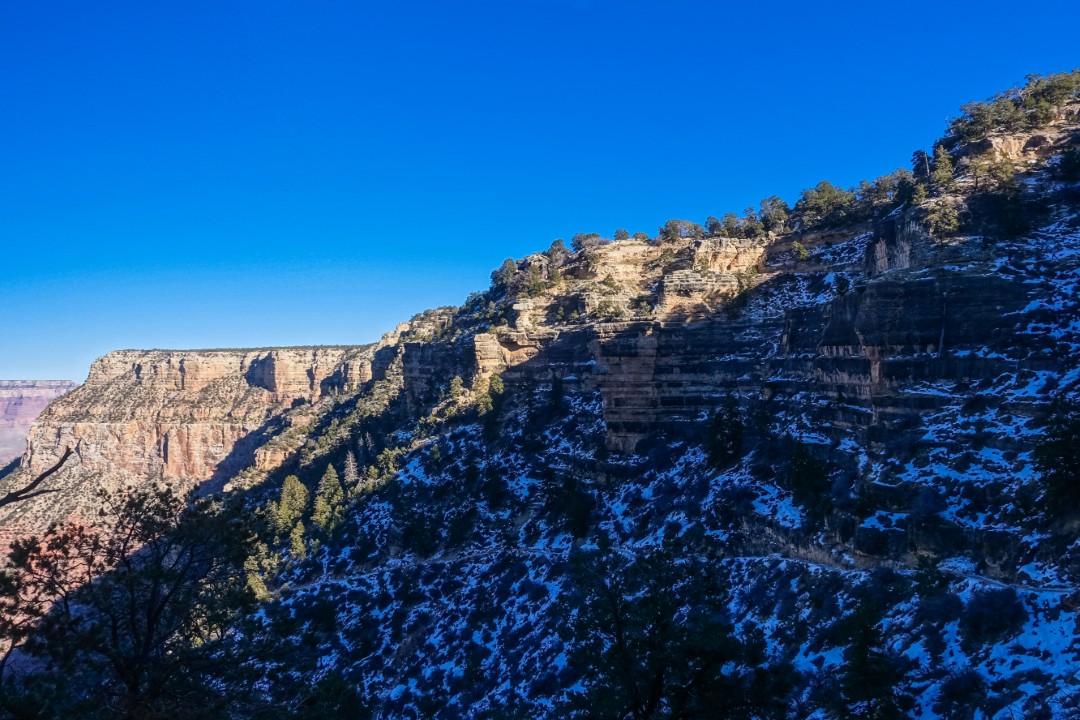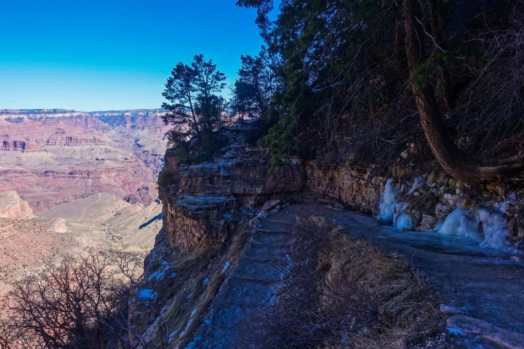 After my epic trip to Death Valley and visiting friends in Nevada, I kept driving and made it to the Grand Canyon. Now, I might be a little jaded because I have seen some pretty impressive views in my life from various mountain tops - but on my first time seeing the Grand Canyon, I was not as impressed as I thought I would be. Now don't get me wrong, it's impressive, it just wasn't the impact I thought it have have on me. I went there expecting to see a big open space, much like a mountain top view, and that's what I saw. I decided to hike a bit into the canyon on the Bright Angel Trail and ended up going just past the 3 Mile Resthouse and back. It was icy near the top so I was glad to have some traction on my feet.