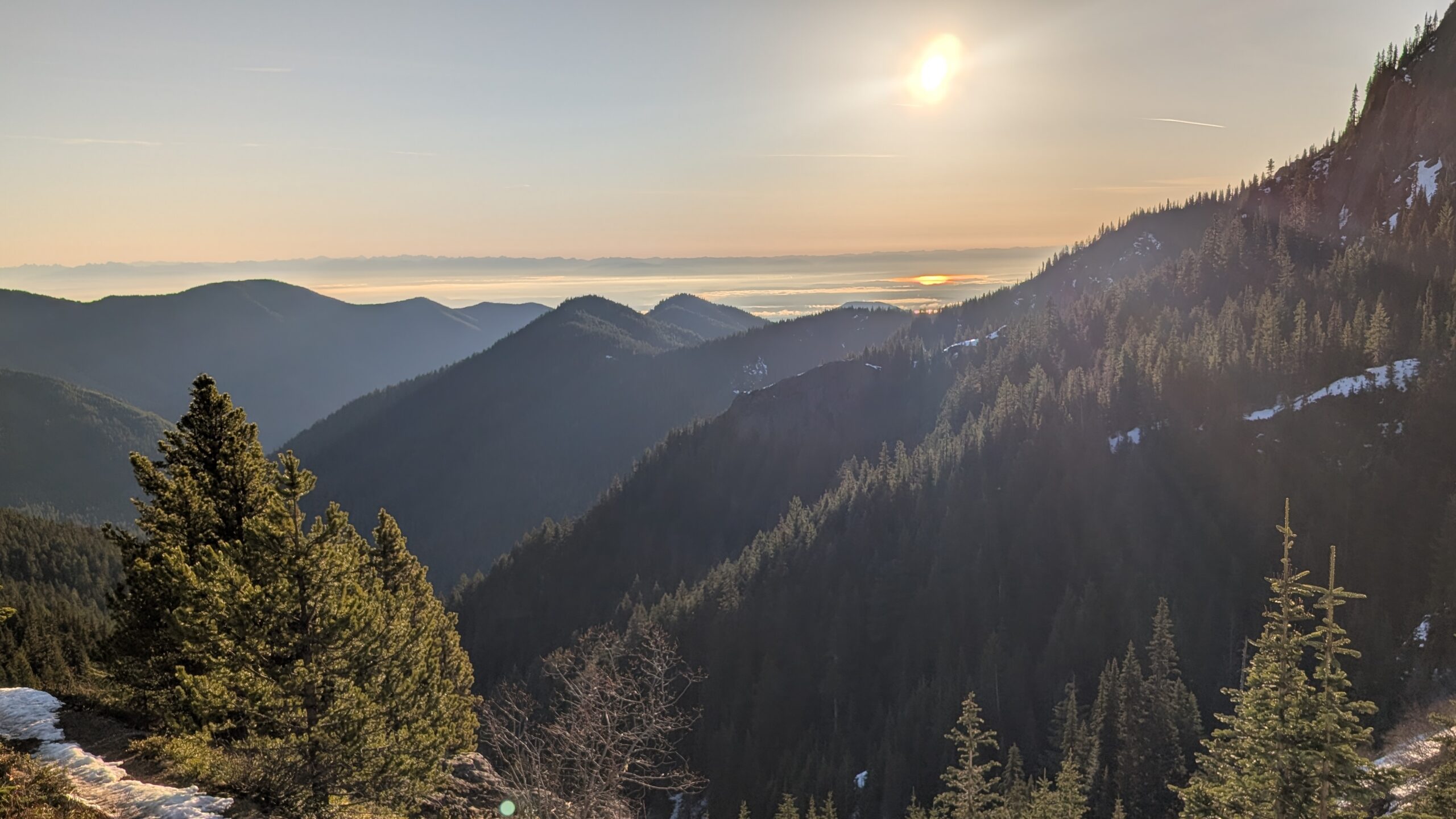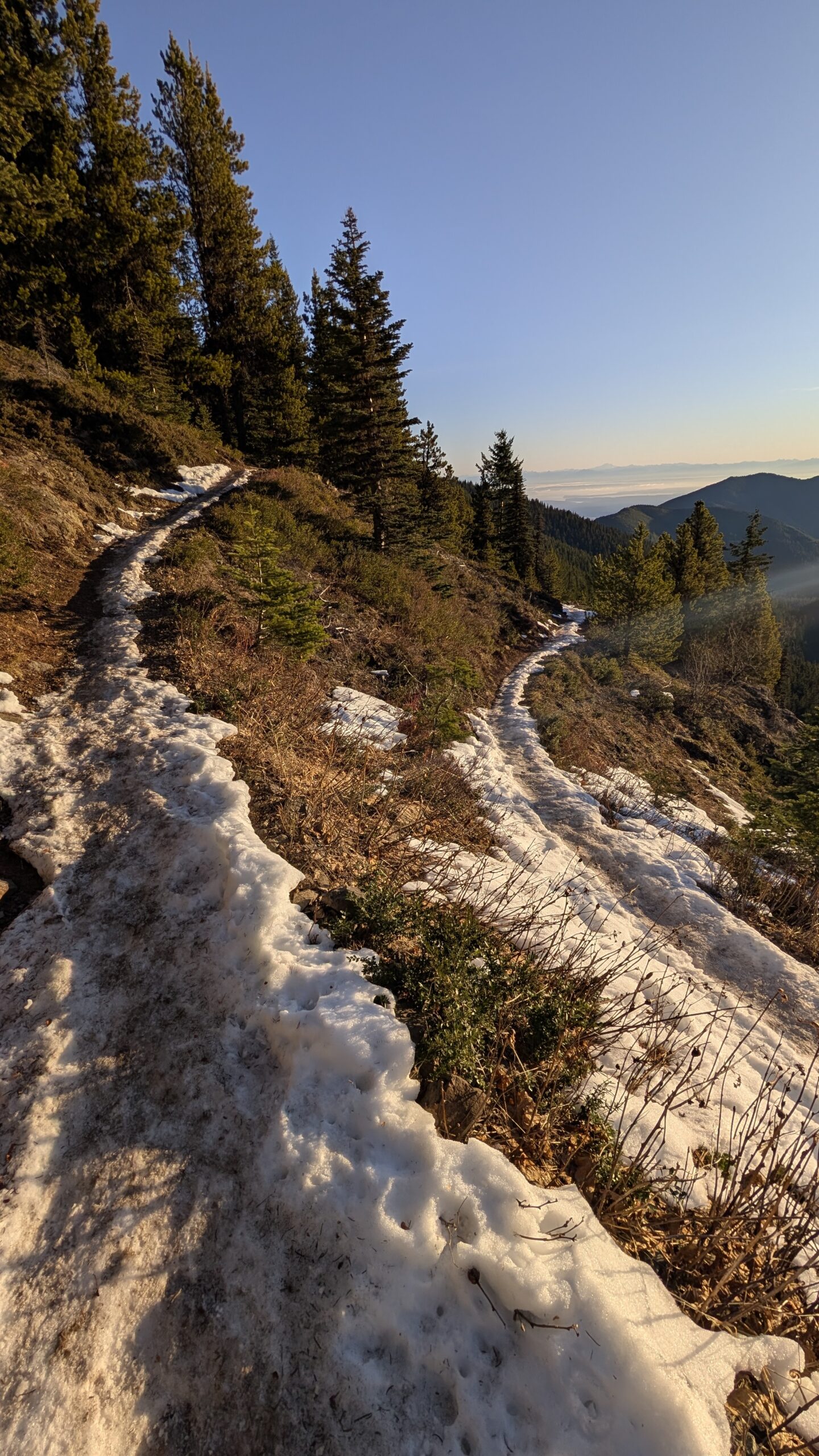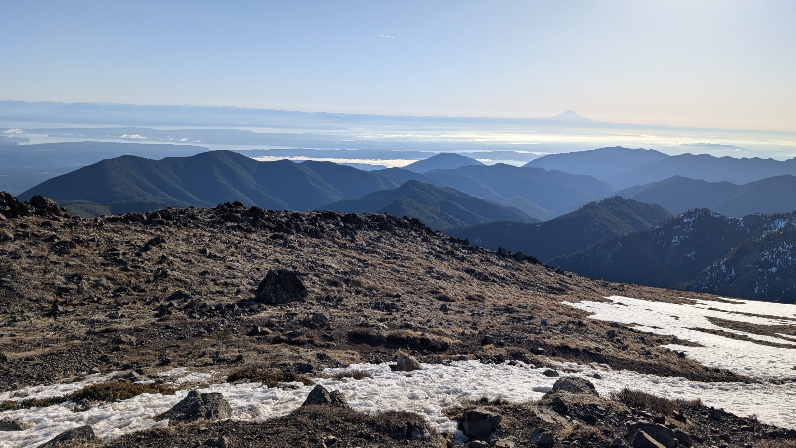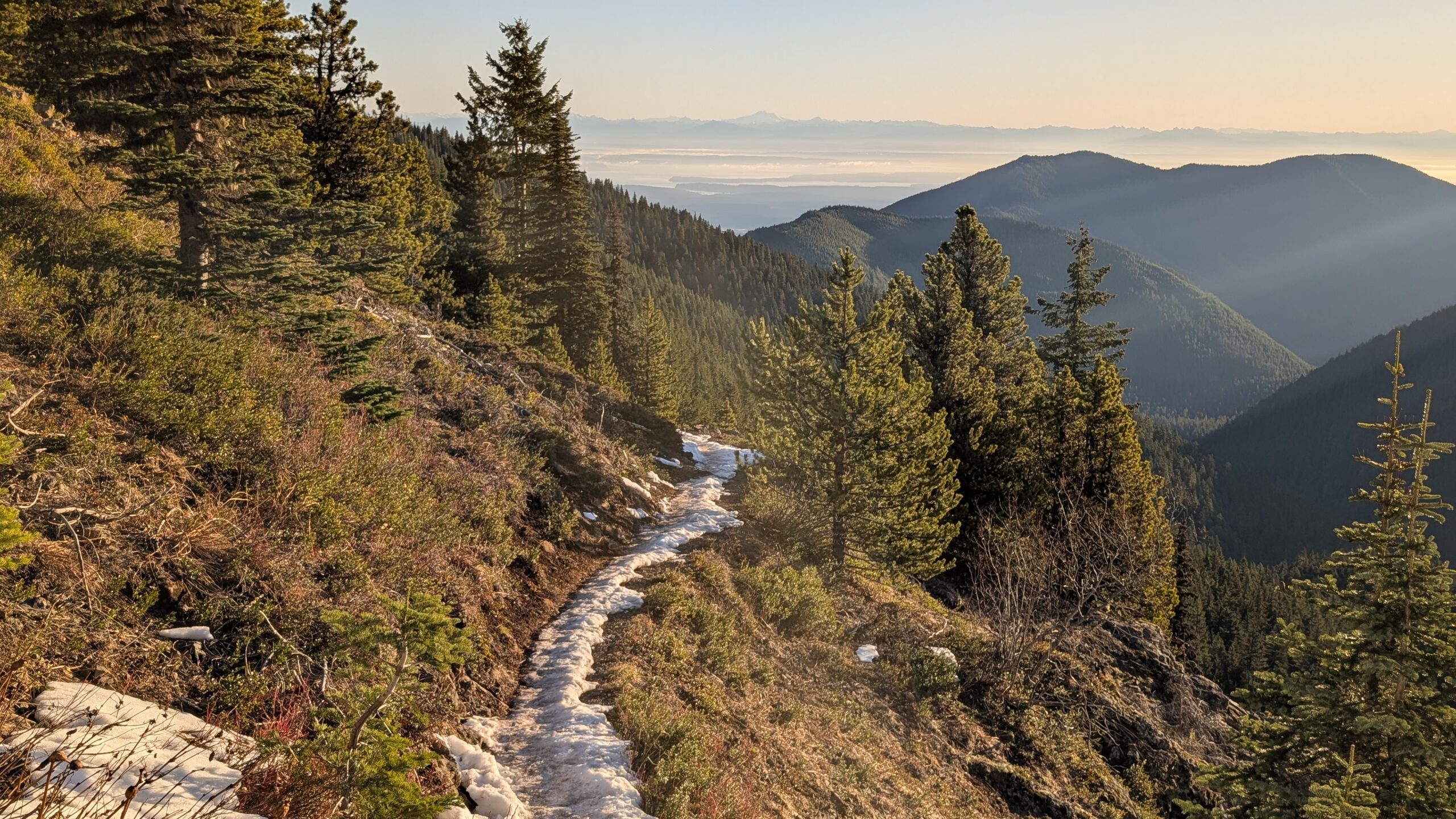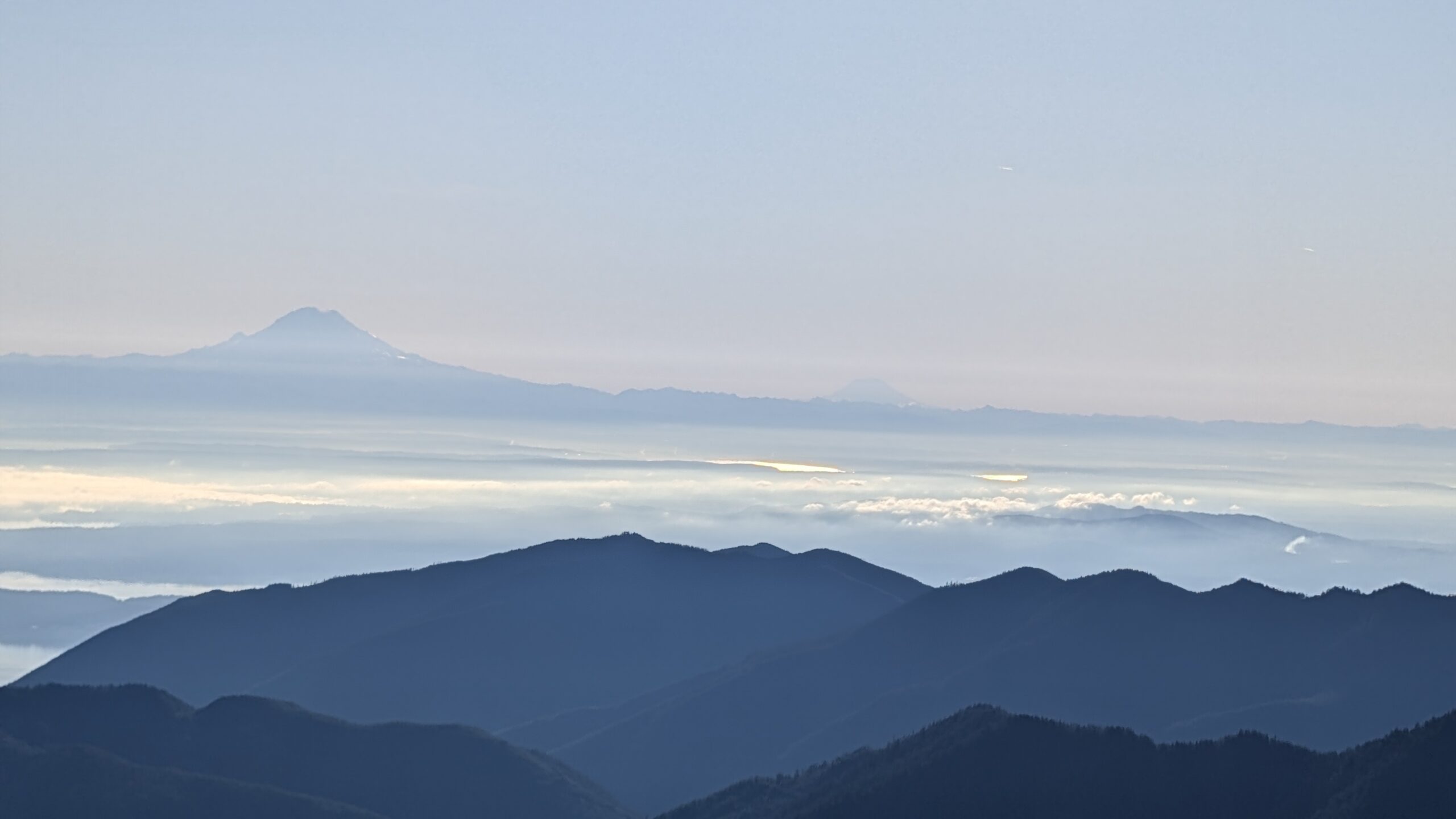 On this January day, I took advantage of the sunshine and inversion-like temperatures at higher elevations and hiked up Mt. Townsend. I chose the Mt. Townsend Trail this time, which involves more elevation gain than my usual route, because recent online reports confirmed it was in good condition. I left home at 5:45 a.m. and arrived at the trailhead just as the sun was beginning to rise.