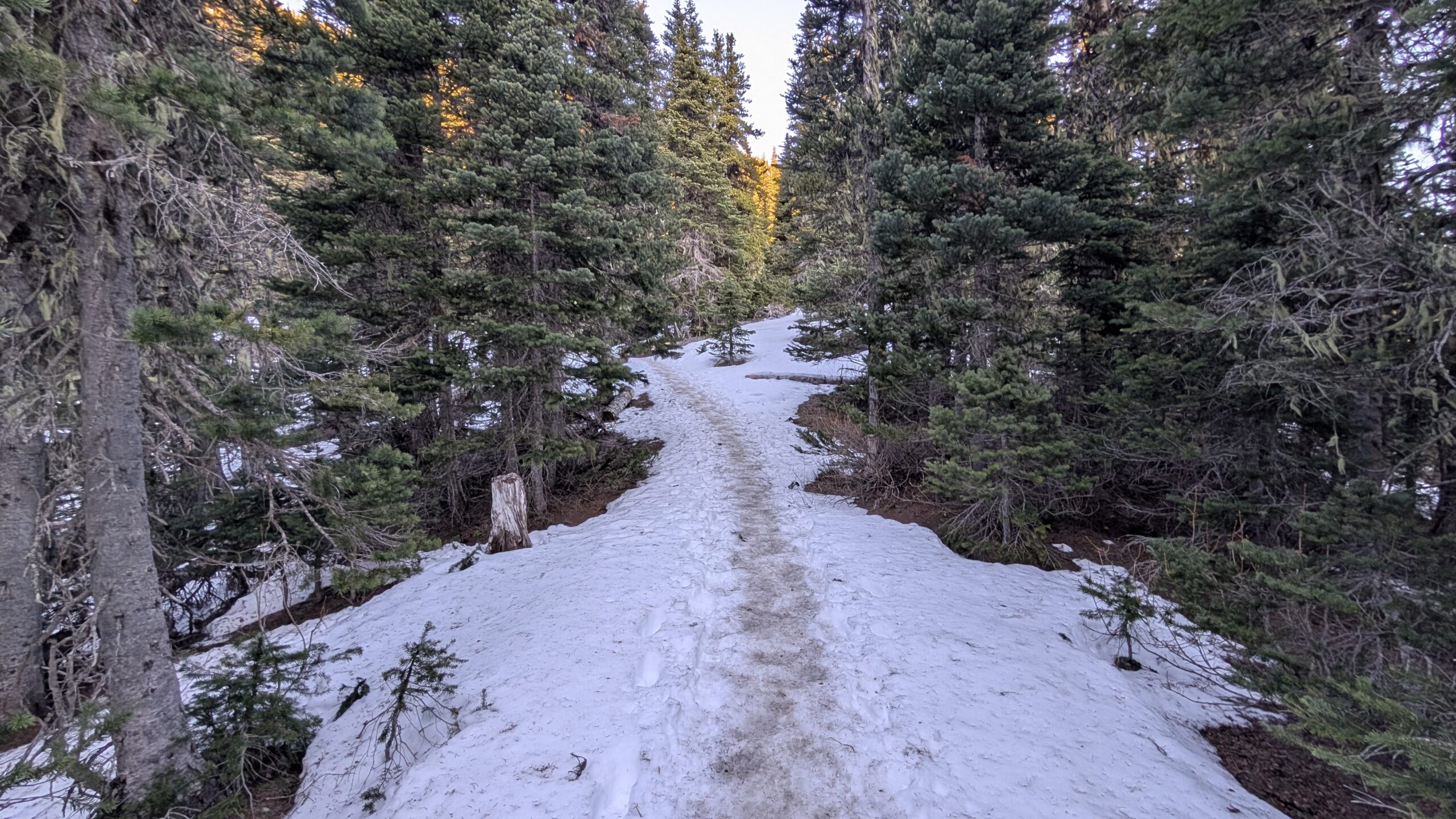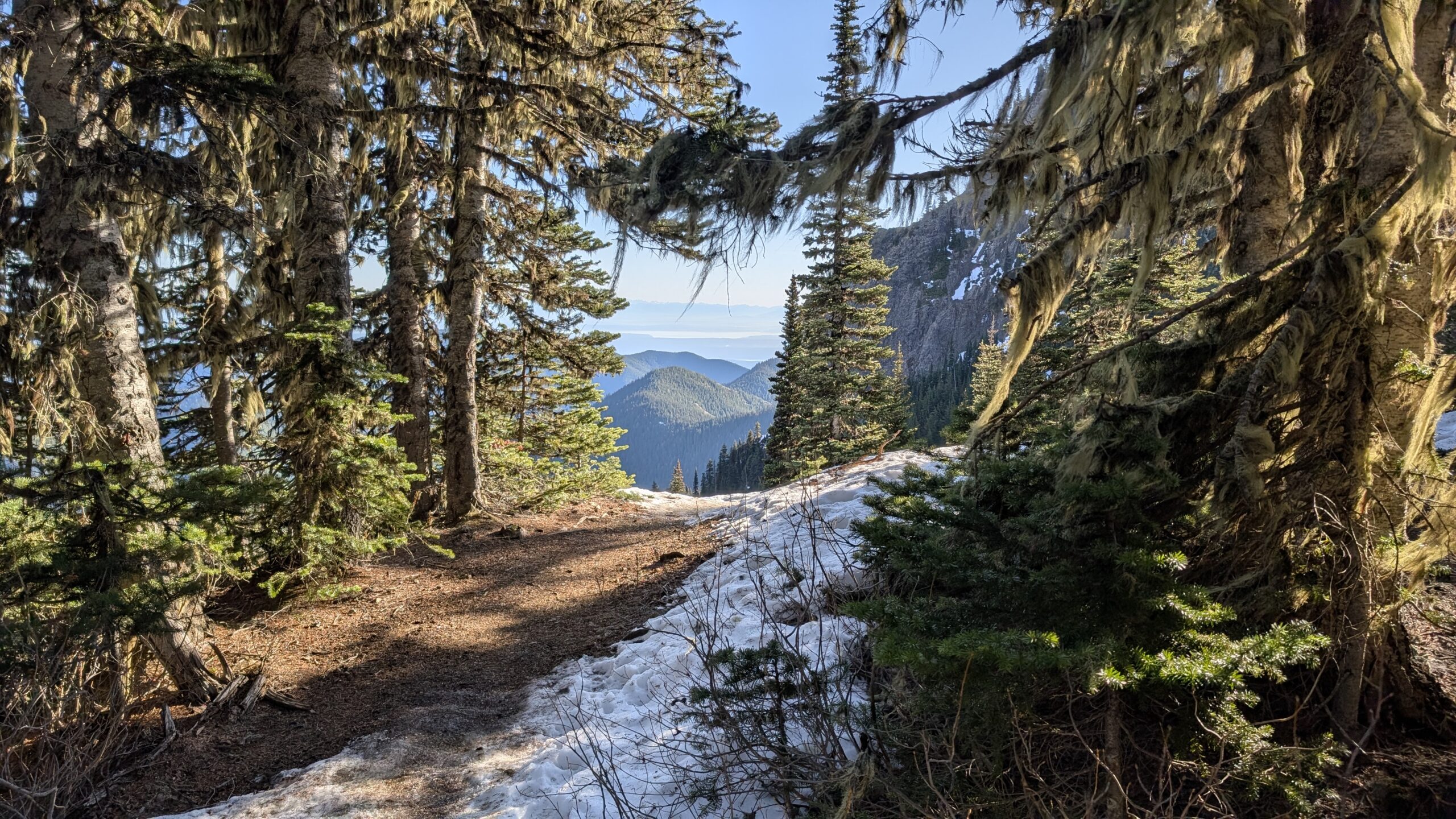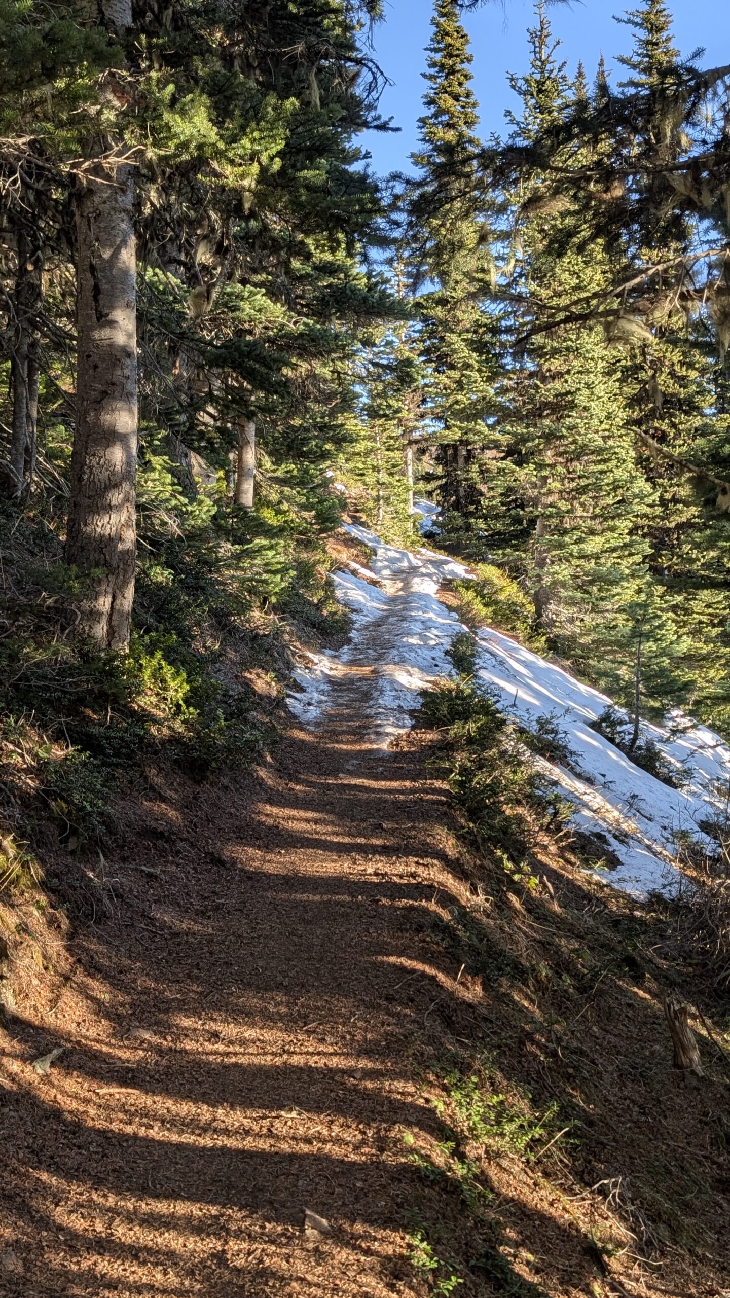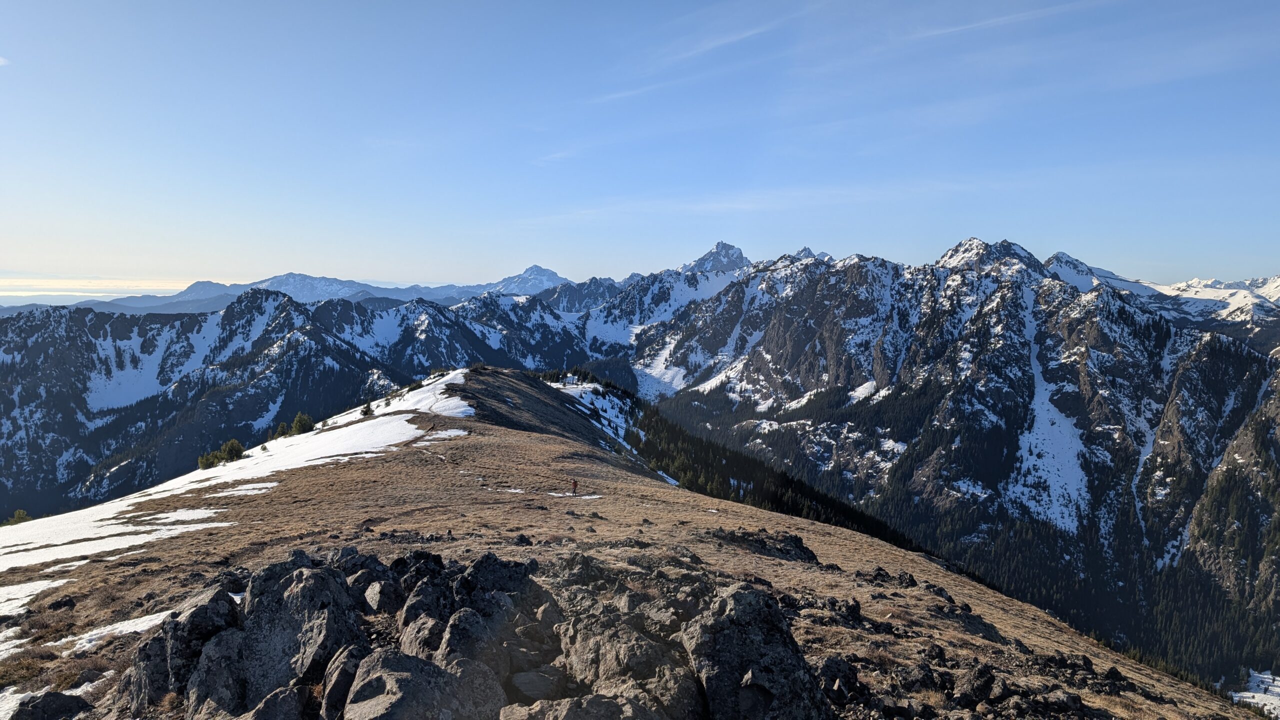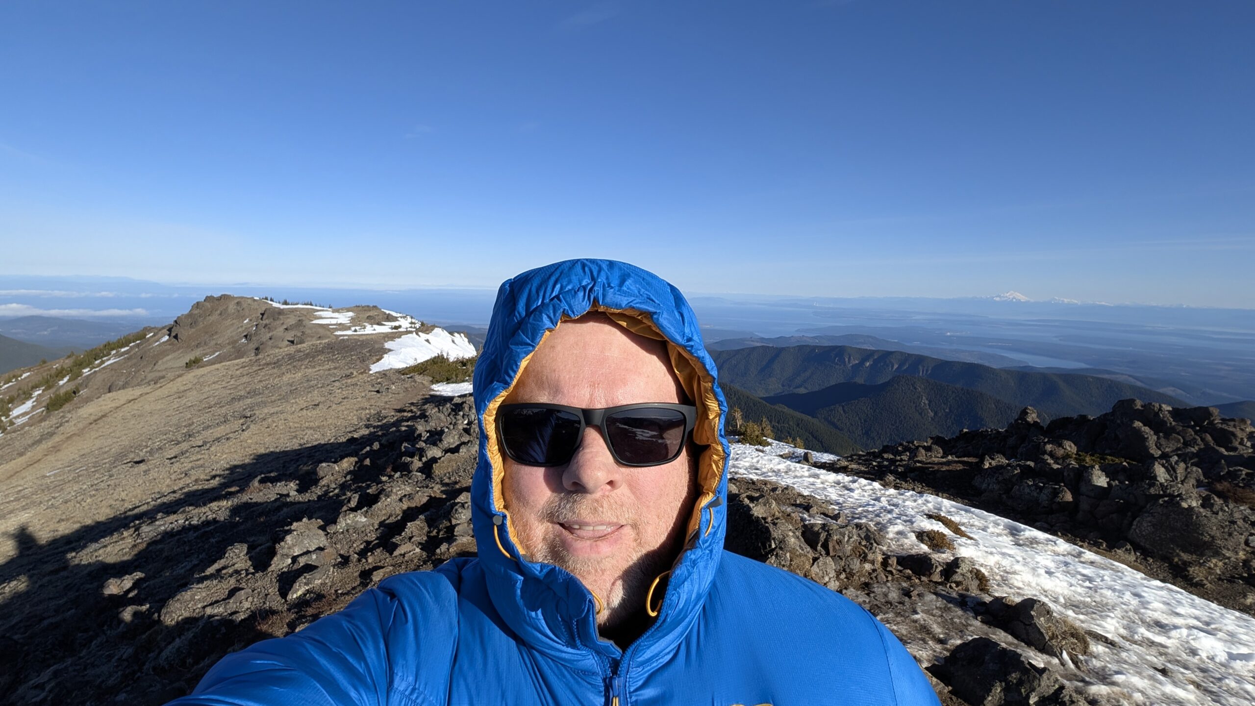 The snow was very firm, more like solid ice, but surprisingly not slippery, so I didn’t bother with microspikes on the way up. I did put them on for the descent, just to be safe. Overall, it was a fantastic day on the mountain. Temperatures actually warmed as I gained elevation, with one notable exception: the ridge top was windy and bitterly cold. Dropping about 20 feet below the ridge provided welcome shelter from the wind, and I took a half-hour break there.
