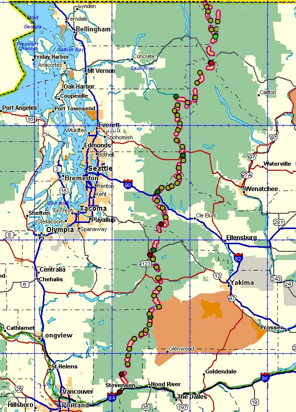 This site includes information you might find useful if you wanted to plan a hike similar to ours. Included are maps of each segment, GPS readings for some of our camps, car pick-up and drop-off locations, and photos of sights and terrain along the route. Also included are some spreadsheets that show elevation gains, miles hiked each day, and more. To get to the details, please click on a link below to get to the section of map you want.