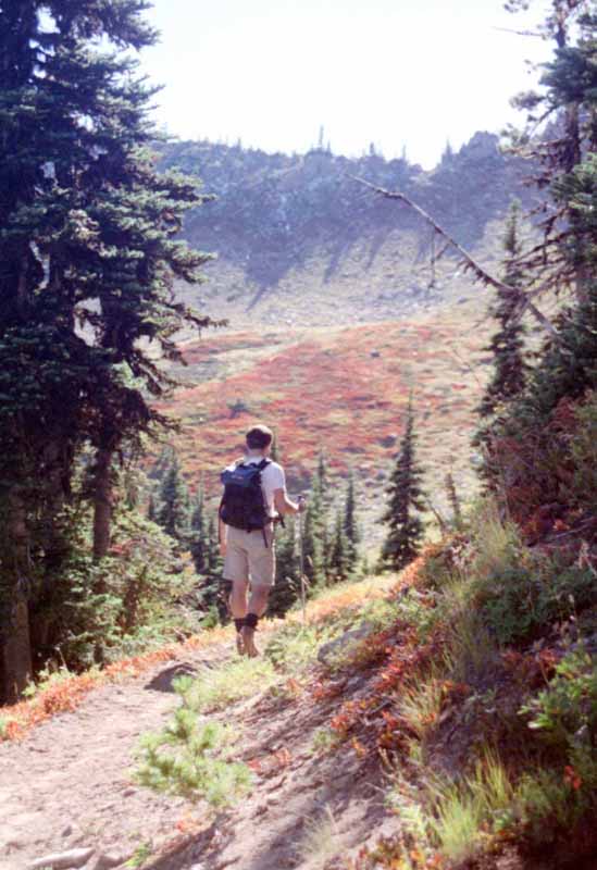 . Direction of hiking is marked with a red arrow