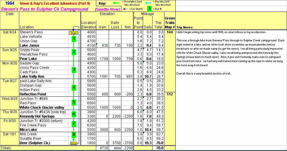 PCT Segment: Steven's Pass to the Suiattle River - September 24 - October 1, 1994