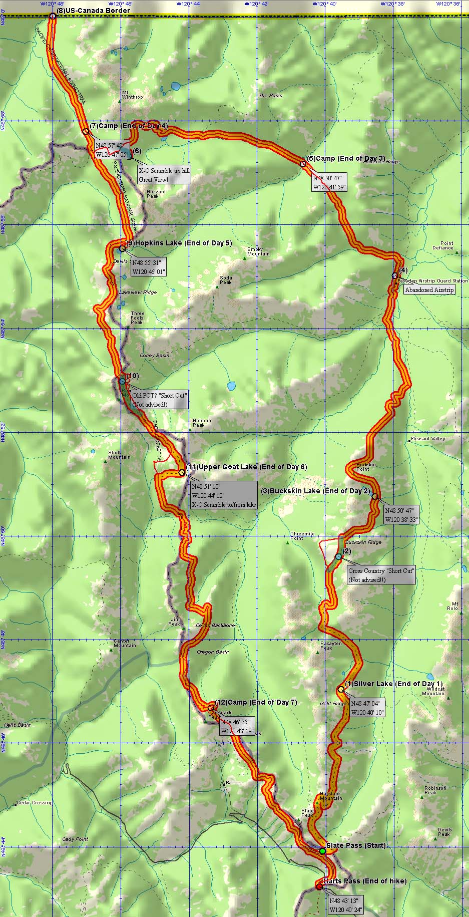 NOTE: This text overlays a fairly large map - it WILL take some time to load - please be patient. Use your scroll bars to move around on this map, and click on camera icons to see photos taken from approximately this point on the trail.